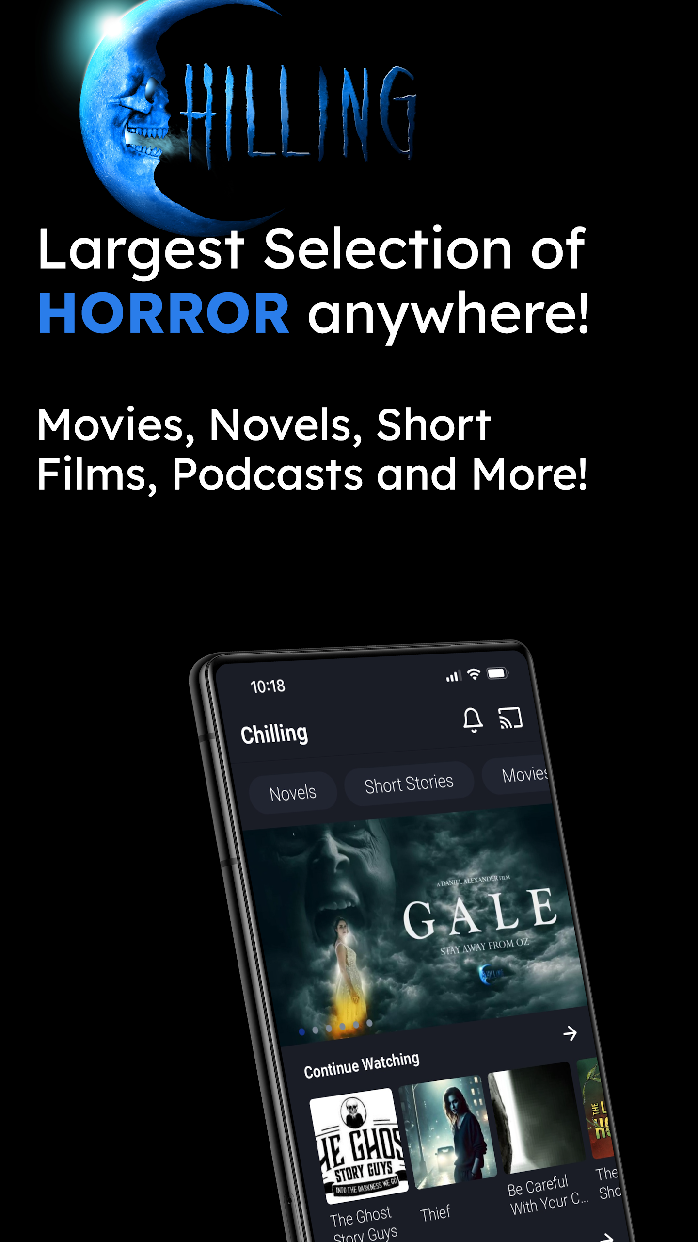 Chilling features a vast library of horror movies and original audio content. You’ll find everything from classic horror films to independent creations, true crime stories, and exclusive narrated horror stories. Our content is updated regularly to ensure you always have something new to watch or listen to.