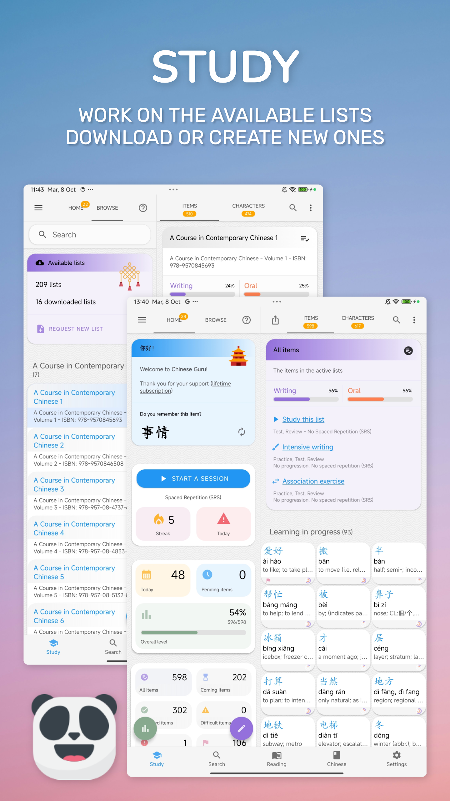 Unlock your potential with engaging lessons, personalized lists, and comprehensive practice tools for mastering Chinese.