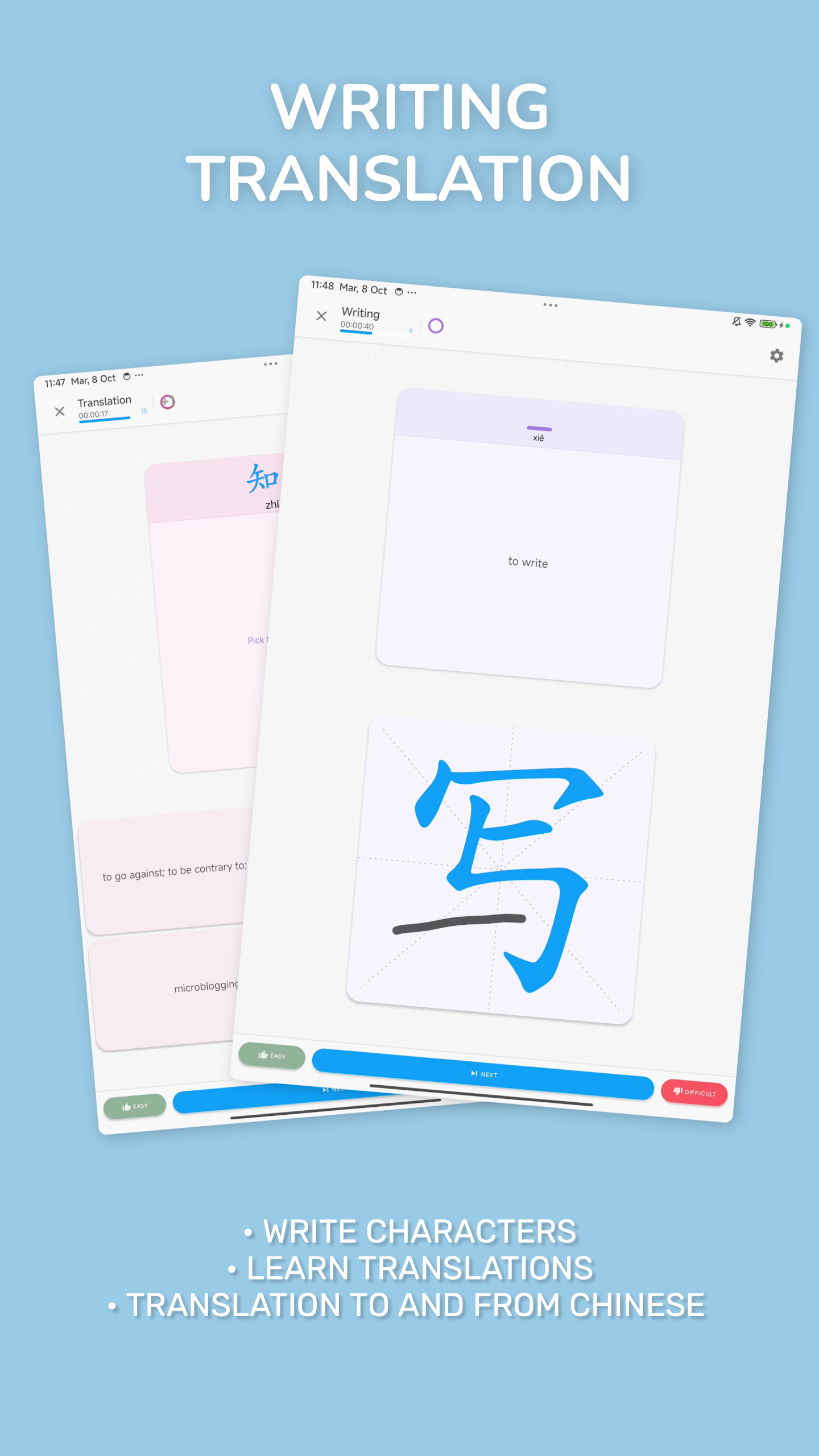 • Easily retain the meanings and translations of your chosen Chinese characters and vocabulary.