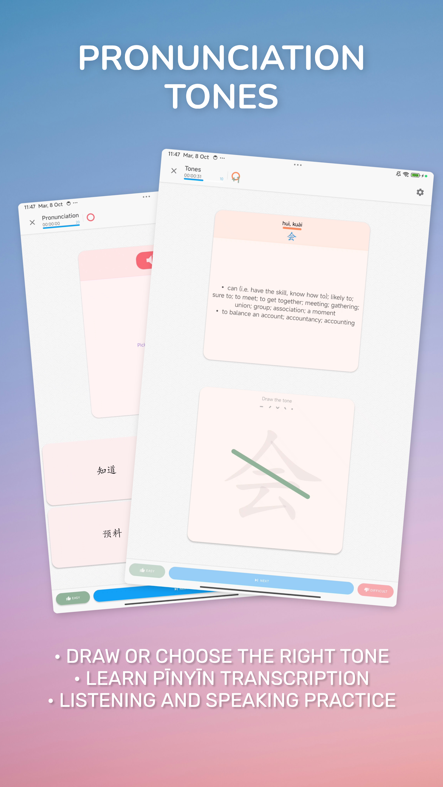 Quickly master the writing and pronunciation of thousands of words and characters.