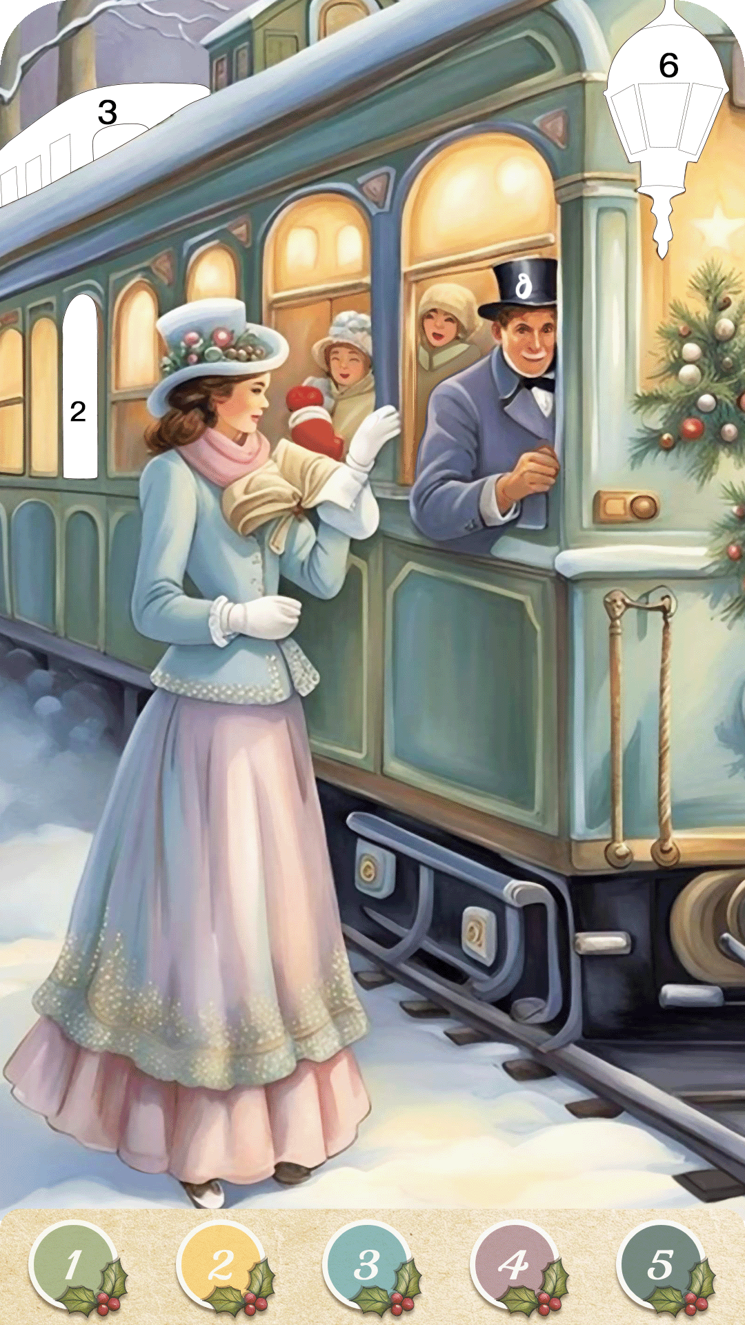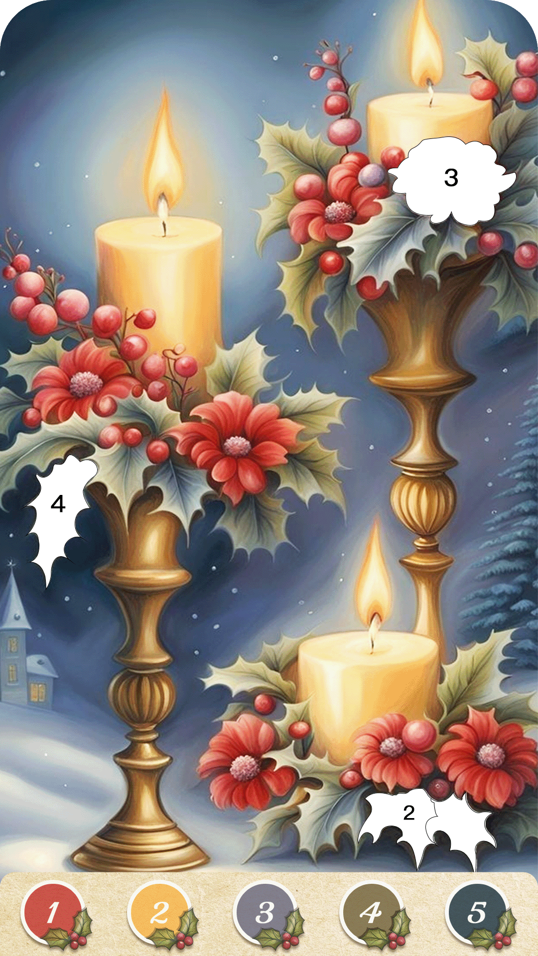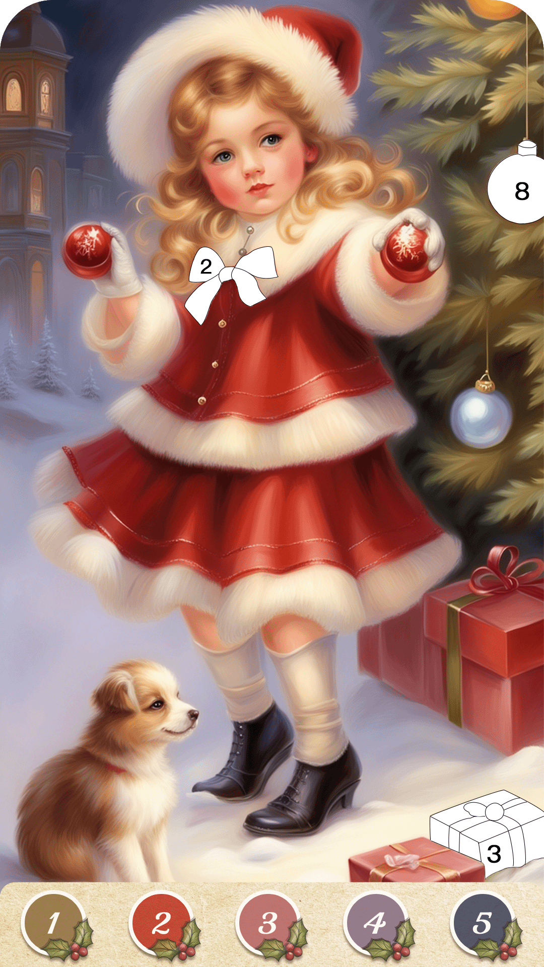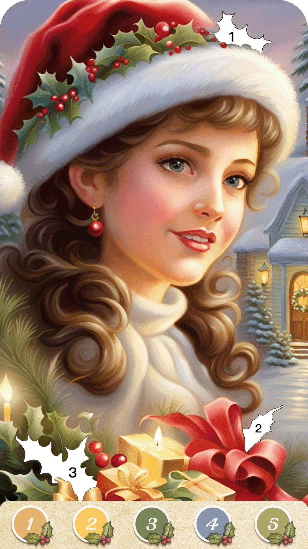 Christmas Game Color by number offers a variety of holiday-themed coloring images, including: