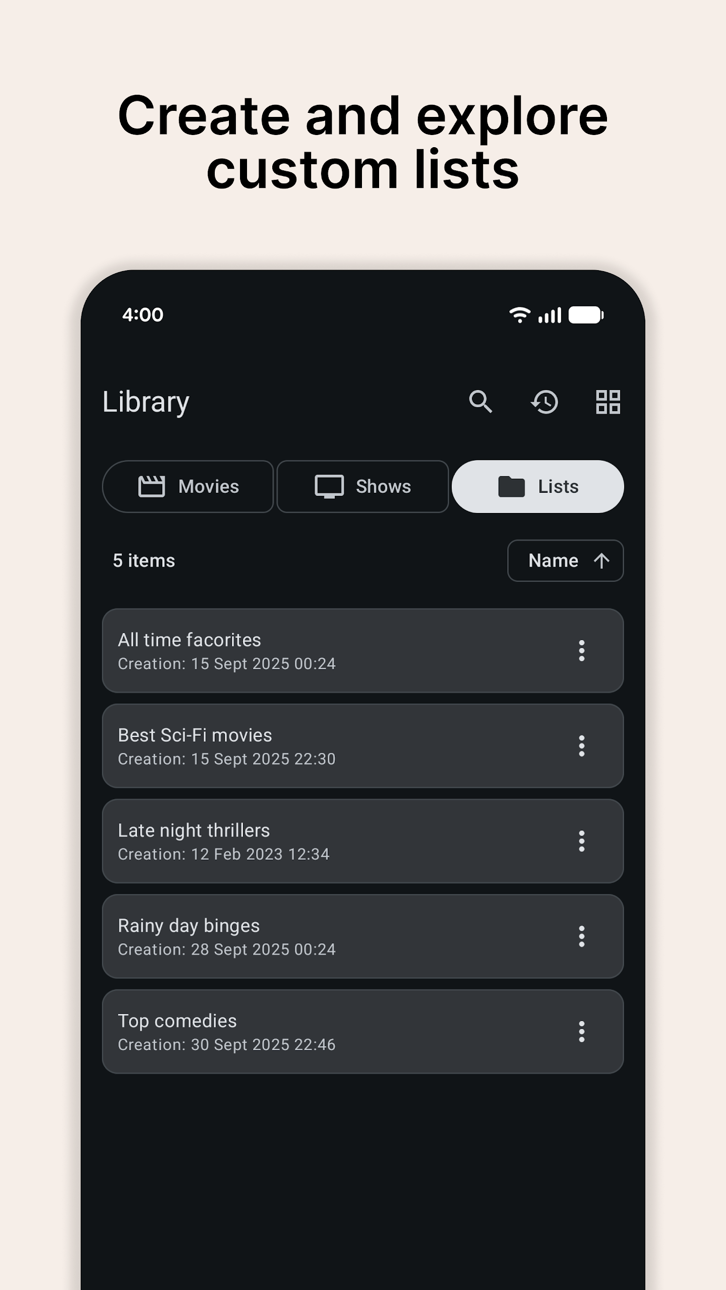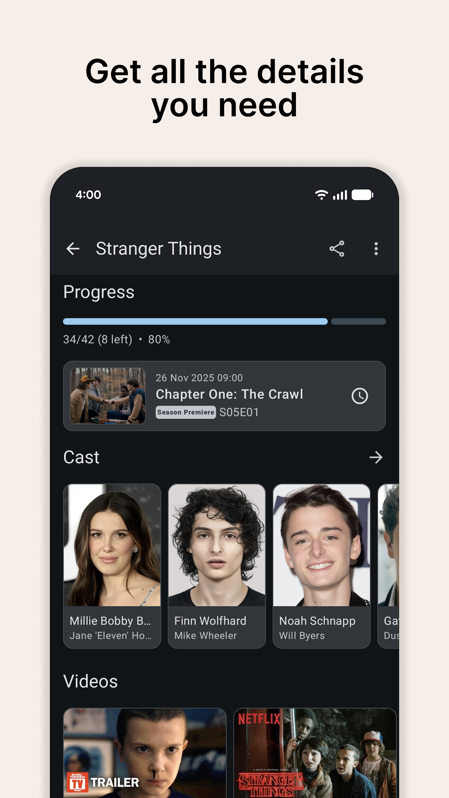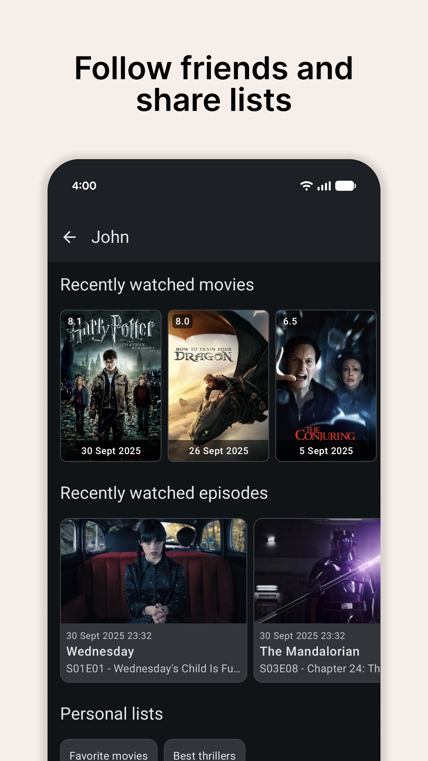 • Mark films, series, seasons, and episodes as viewed and create a comprehensive history of your watch experience