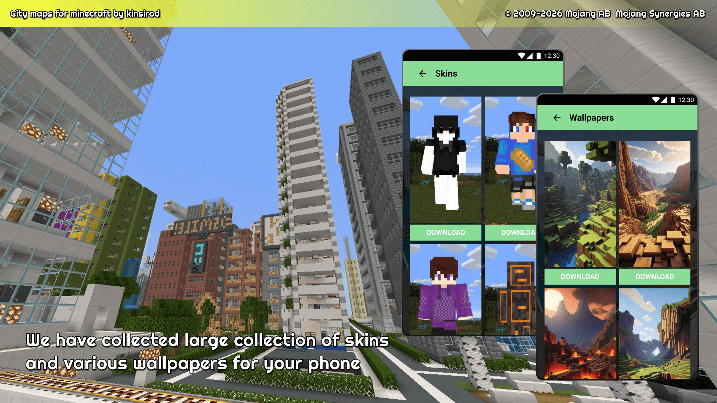 Are you interested in enhancing your gaming experience with maps and modifications? Do you enjoy exploring exciting city maps for MCPE? If so, download our collection of city maps for Minecraft to access a fantastic array of vibrant urban environments complete with building modifications. There's no need to invest time in constructing numerous skyscrapers and streets filled with citizens and vehicles when you can immerse yourself in ready-made cities. Additionally, there's no need to seek out village maps for MCPE, as they simply cannot match the vastness and complexity of these urban landscapes. With such impressive city designs in Minecraft, your gameplay will undoubtedly become more enjoyable and diverse. You will find delight in wandering through the bustling city streets and admiring the various structures. Exploring a city mod in Minecraft is always far more exciting than meandering through a village mod populated by locals. Say goodbye to searching for city map construction guides for MCPE or laboring alongside friends for countless hours. You won’t have to design any buildings since you'll be able to incorporate an extensive variety of constructions into your city mods complete with residents. This city mod for Minecraft PE is sure to become a recommendation among your friends, inviting them to join you in your explorations. Gather your companions and embark on adventures through the city mods for Minecraft.