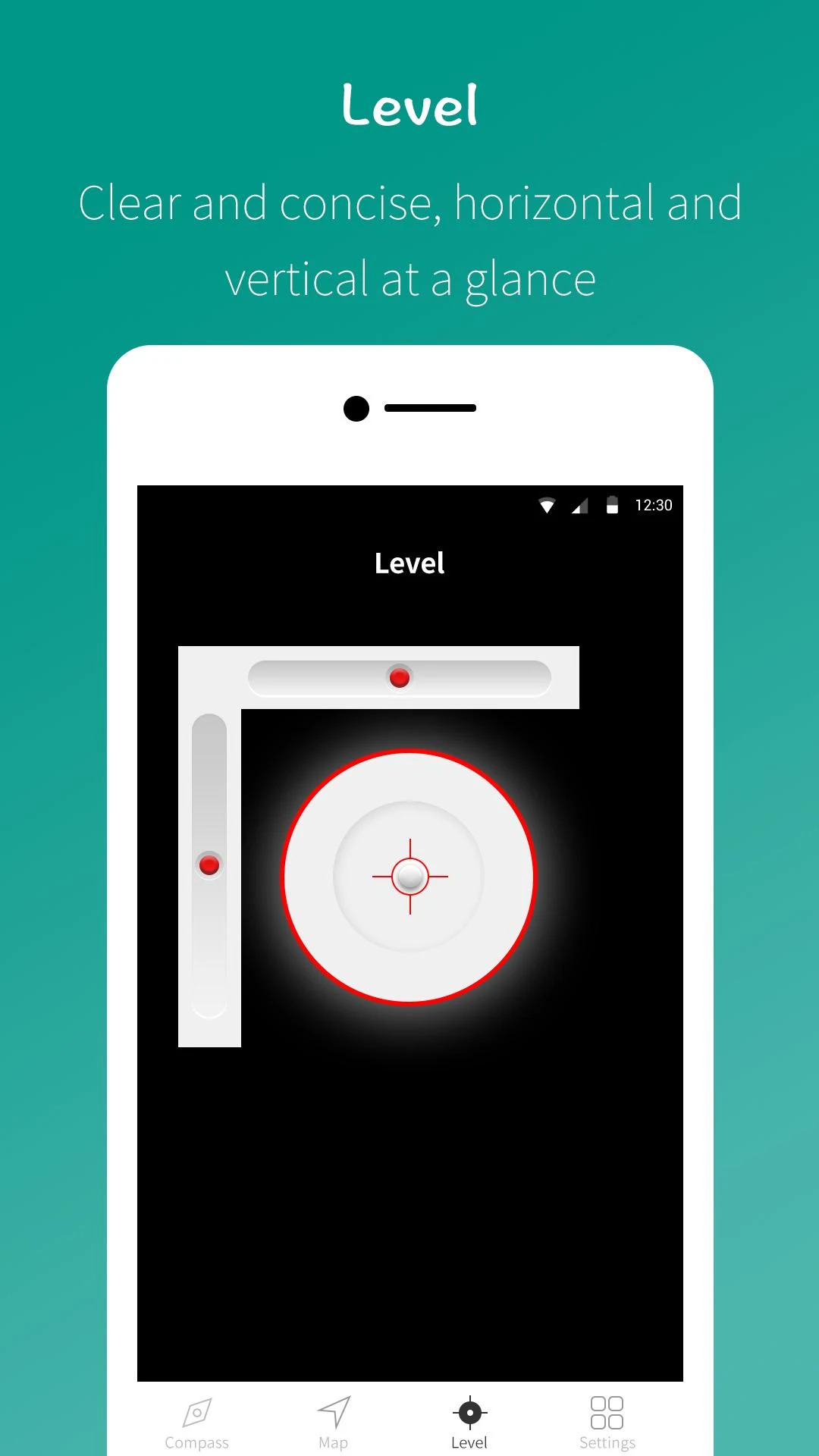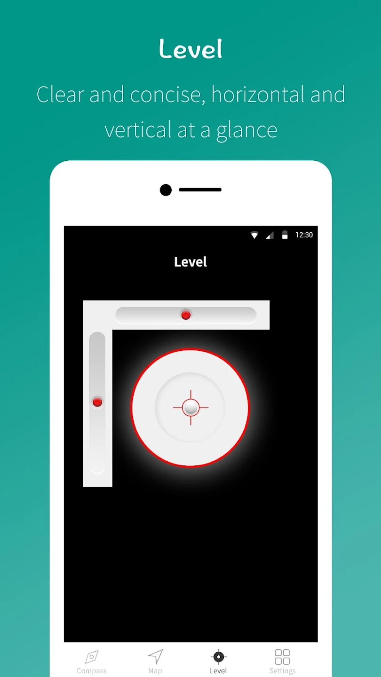 🧭 Built-in Level Tool: Displays horizontal and vertical tilt for balanced navigation;