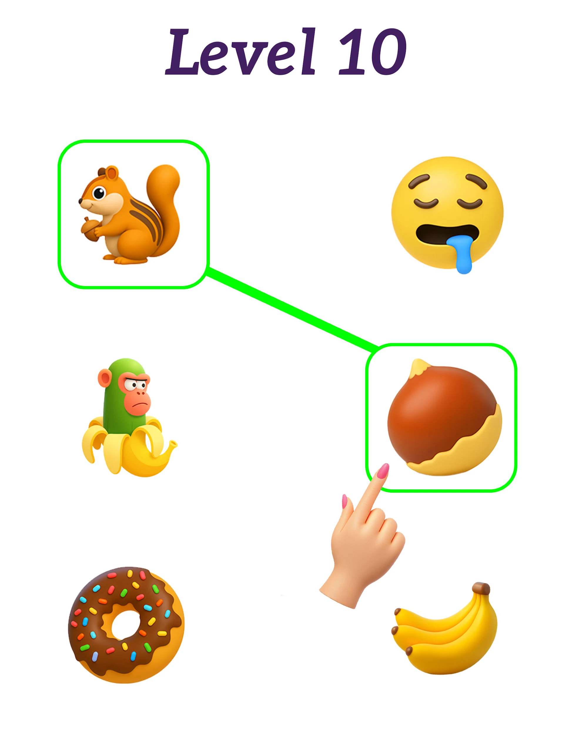 Fun guessing matching games and connecting emoji levels are a lot of fun, sort of like a "find the emoji" and pair-matching game or puzzle game. You have to match the right emoji with another to complete each guessing game level.