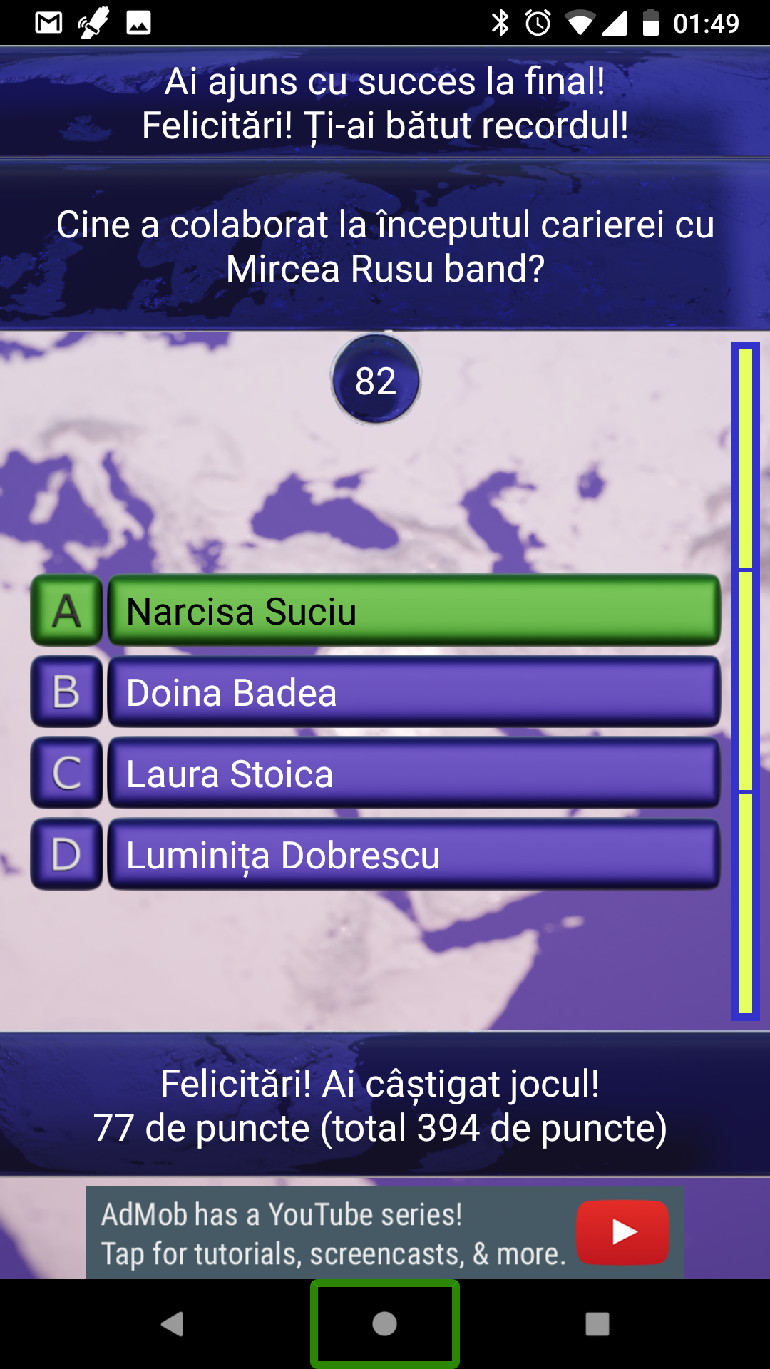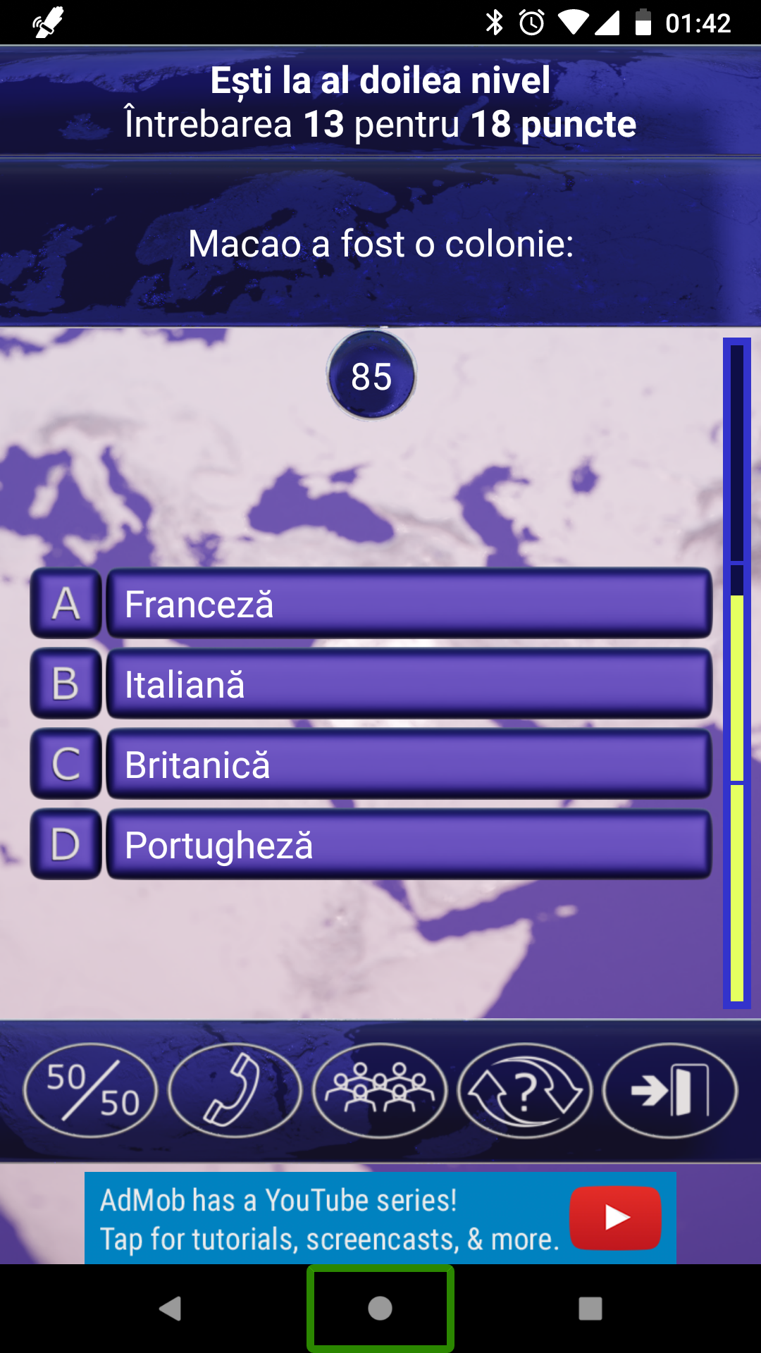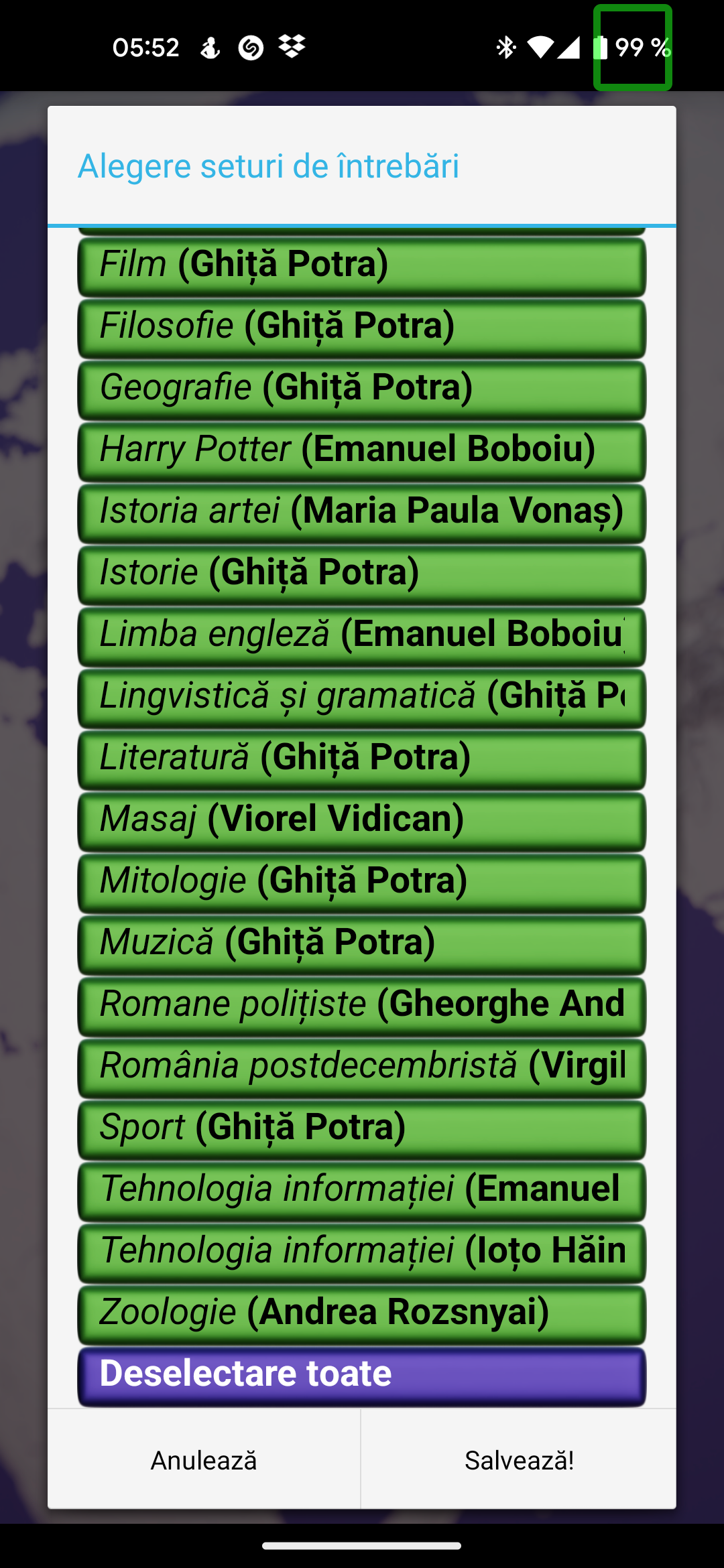 It also serves as a useful tool for baccalaureate preparation, with sets derived from high school educational materials. Currently, we offer textbooks such as: History of Romanians (12th grade), Philosophy (12th grade), Economics (11th grade), and Psychology (10th grade), each containing approximately one thousand questions.