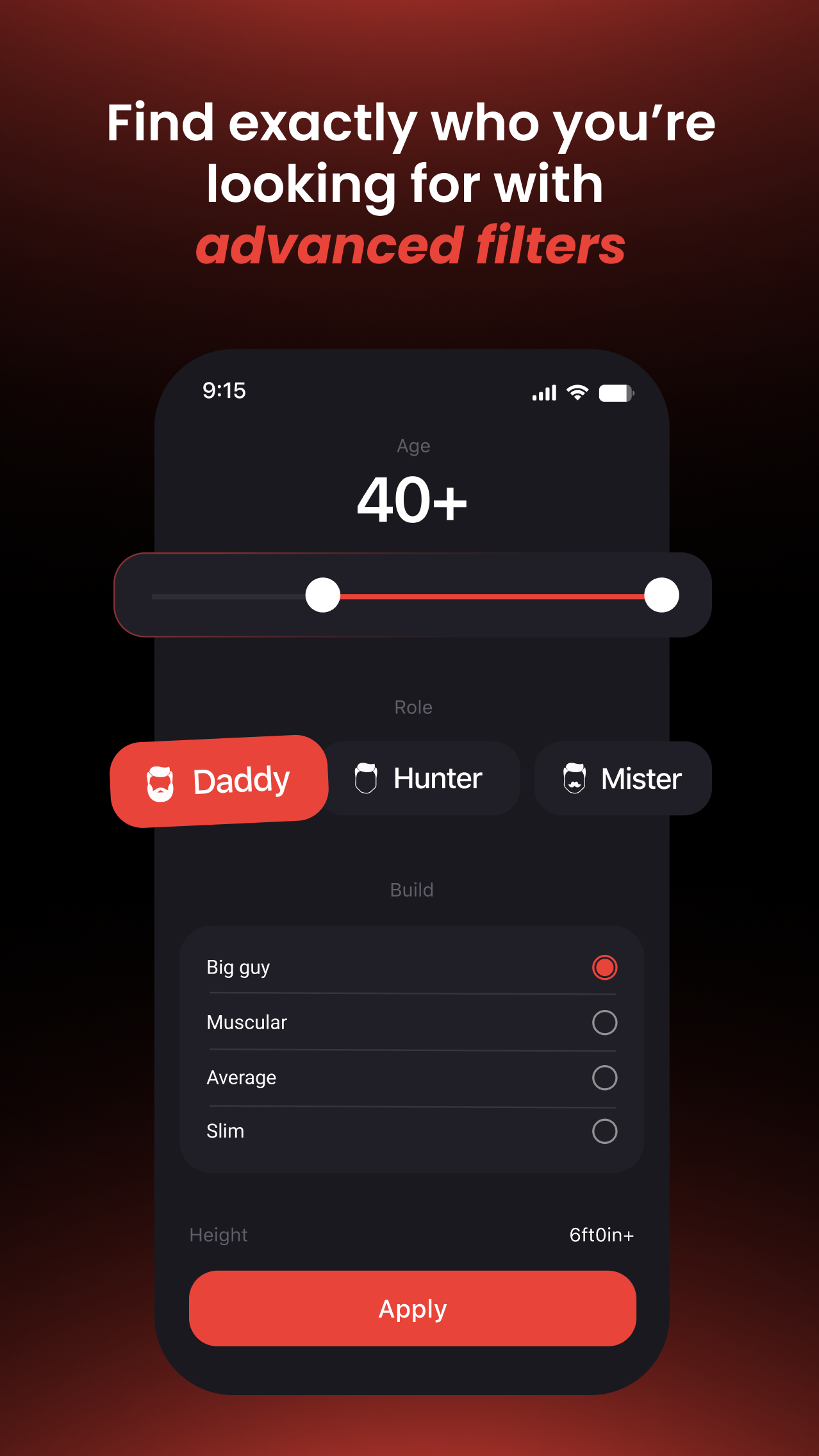 - ADVANCED FILTERS - Narrow your search to exact body build and more to find your perfect match.