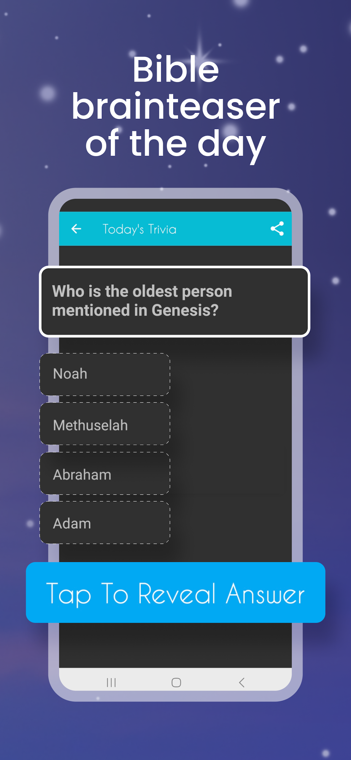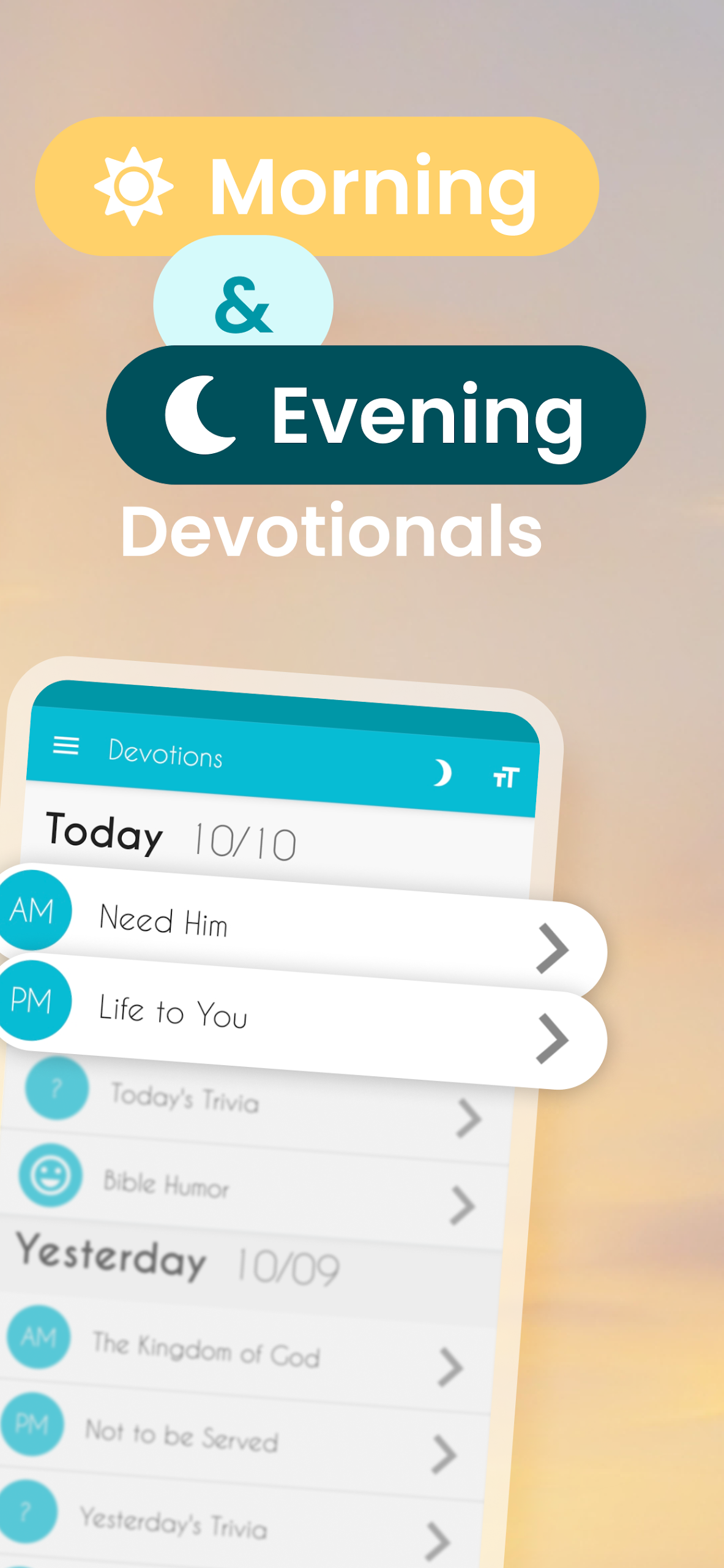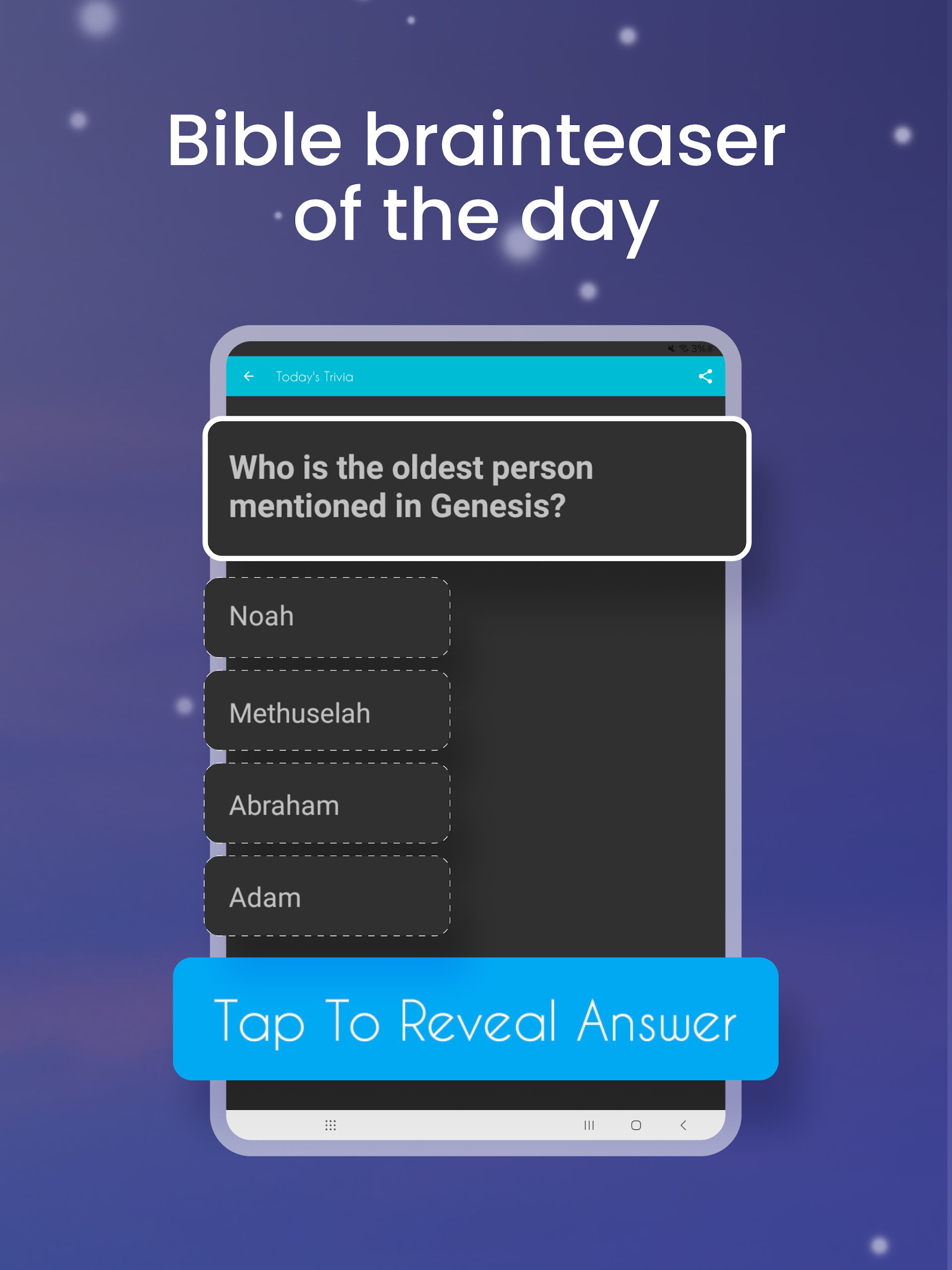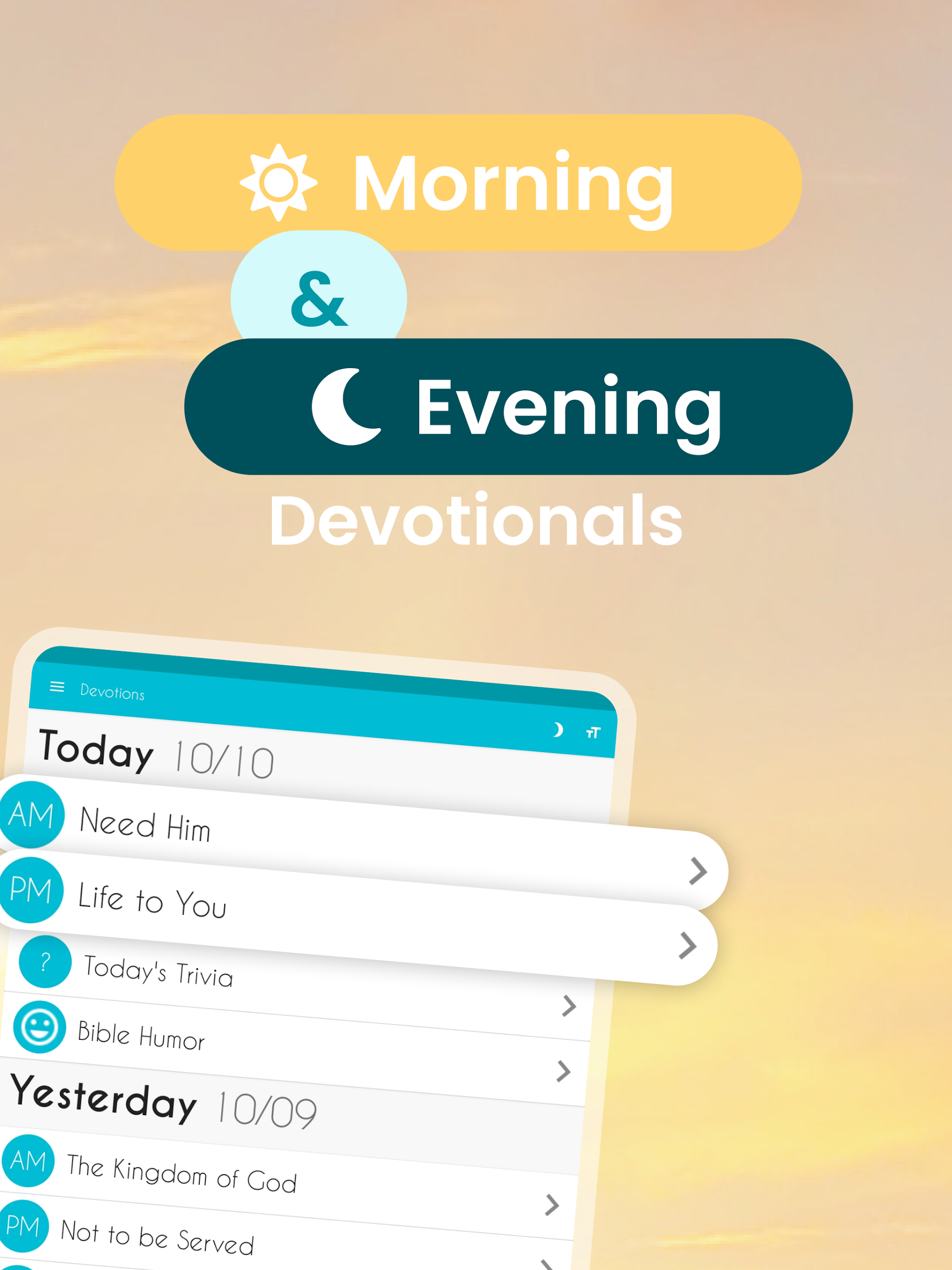 Commence and conclude your daily routine by contemplating the word of God with easy-to-understand and applicable devotionals. To enrich your spiritual journey, engage in Bible trivia each day, featuring questions that facilitate interaction and memorization of scripture, followed by lighthearted Bible humor to add cheer to your day.