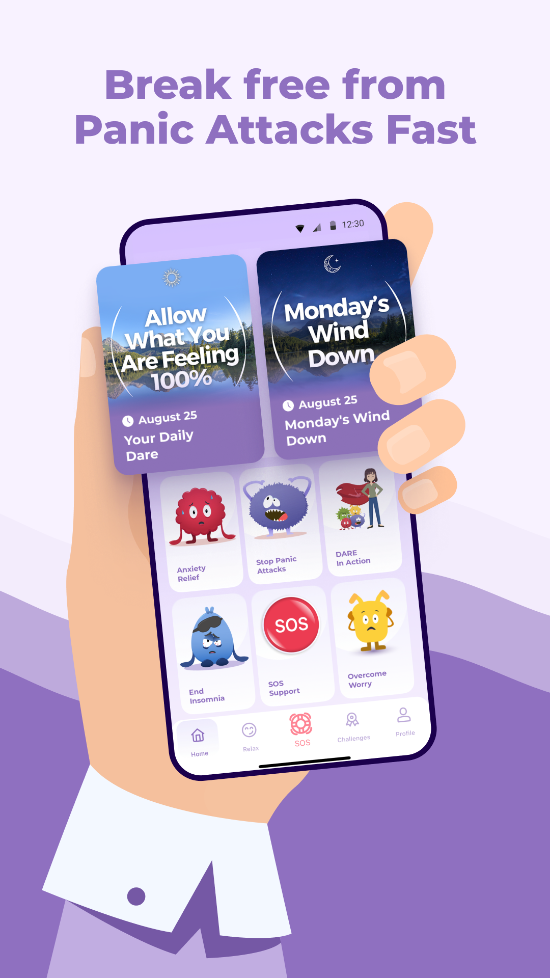 The DARE app is grounded in evidence-based techniques aimed at helping individuals overcome anxiety, panic attacks, worries, intrusive thoughts, insomnia, and more.