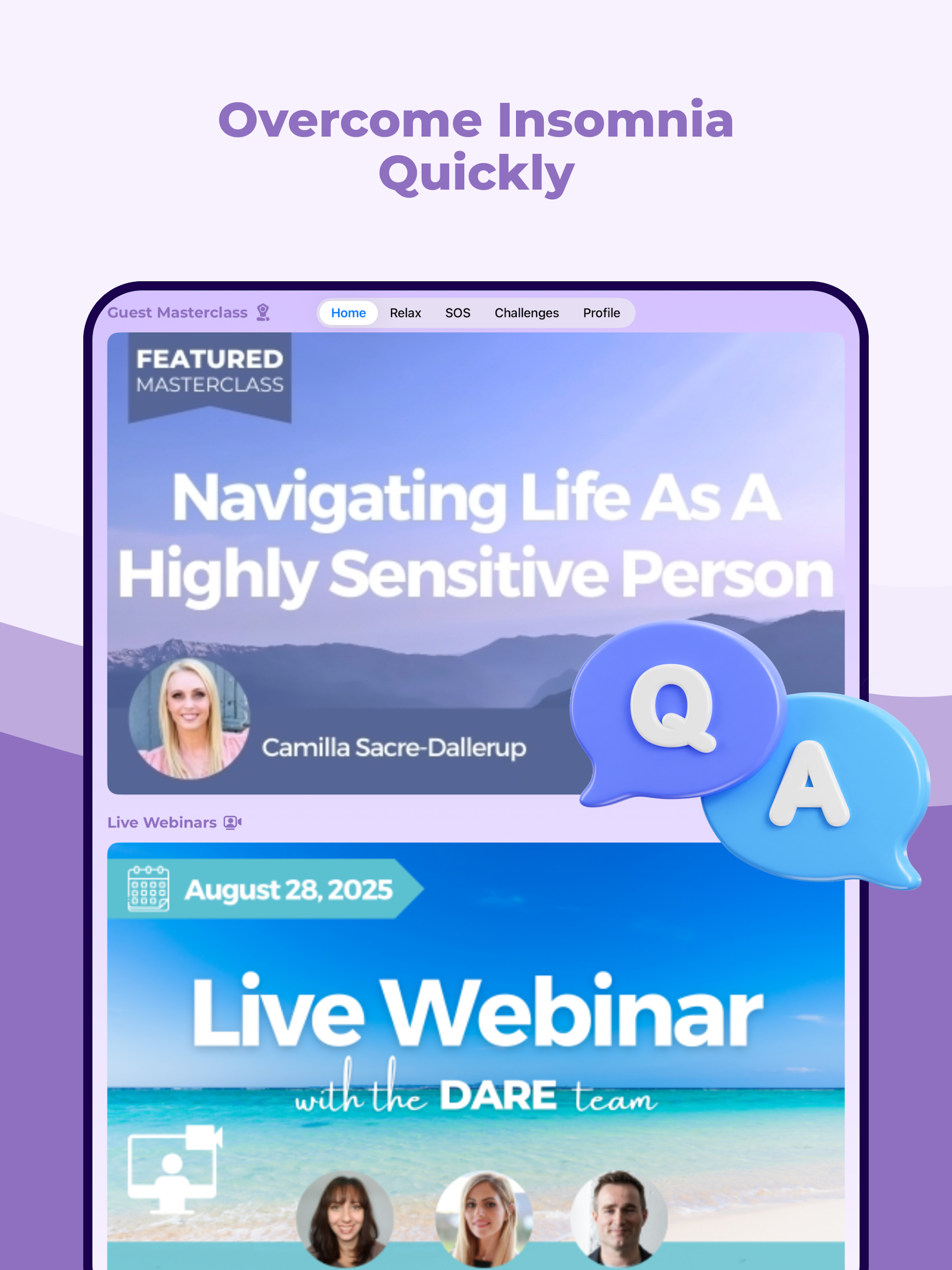 “DARE has been a lifesaver; I started using it recently, and it has already been more beneficial than my therapist. The advice and responses are great, but the deep relief and insomnia recordings are what really help me fall asleep.”- MartinB