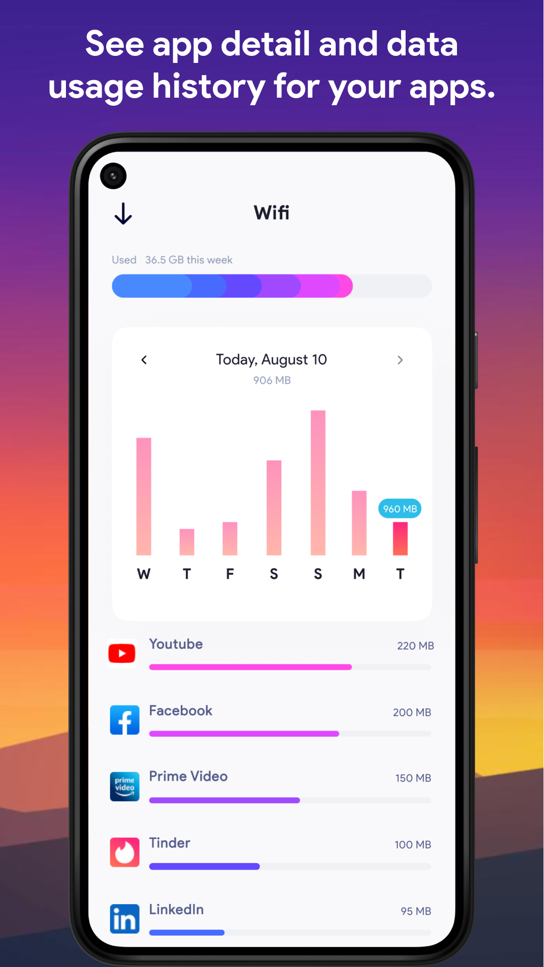 4.Comprehensive data manager, sorting mobile and Wi-Fi usage.