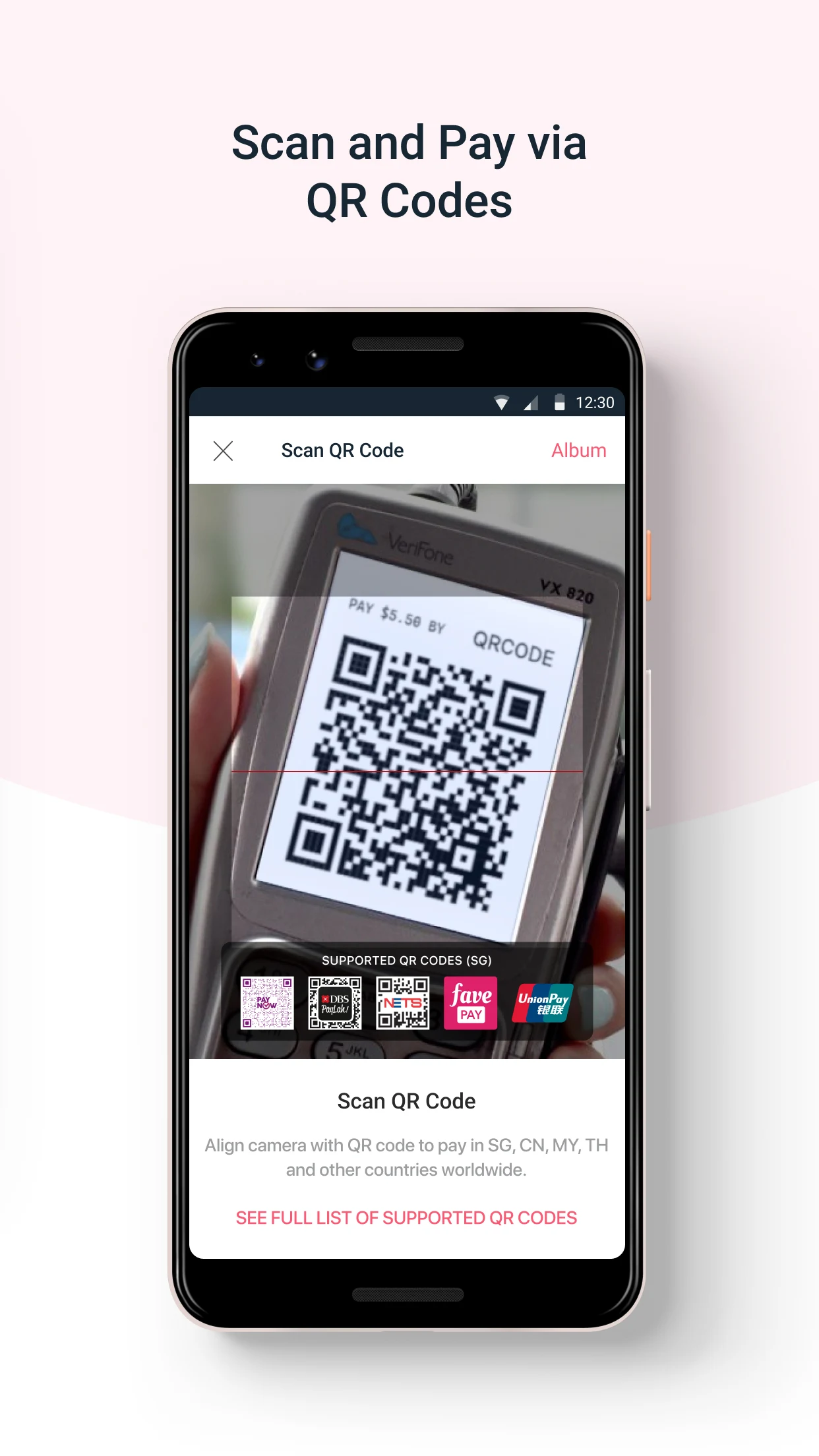 - Scan to pay: At over 180,000 merchants with NETS QR, PayNow QR, FavePay QR, and selected SGQR codes.