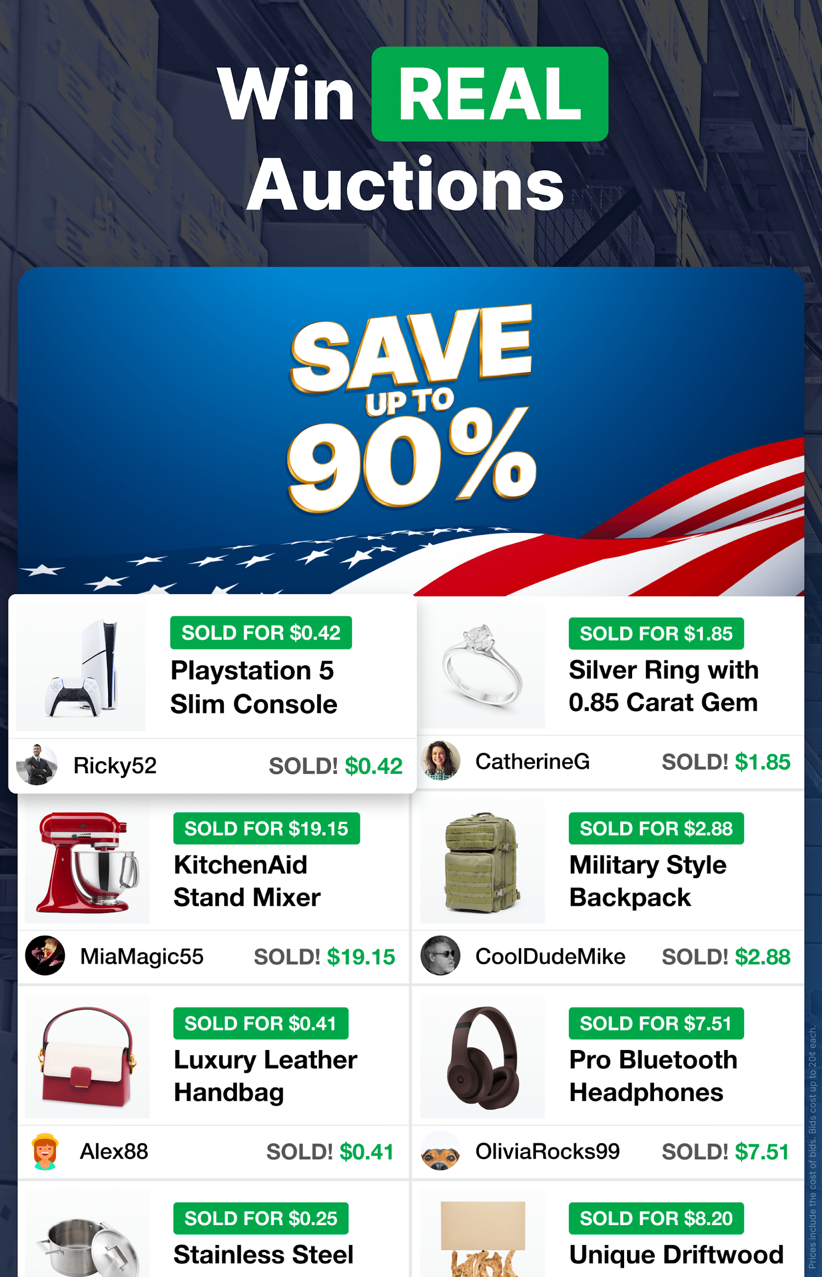 - Bid on online auctions featuring warehouse deals, closeouts, overstock surplus, and other irresistible offers.