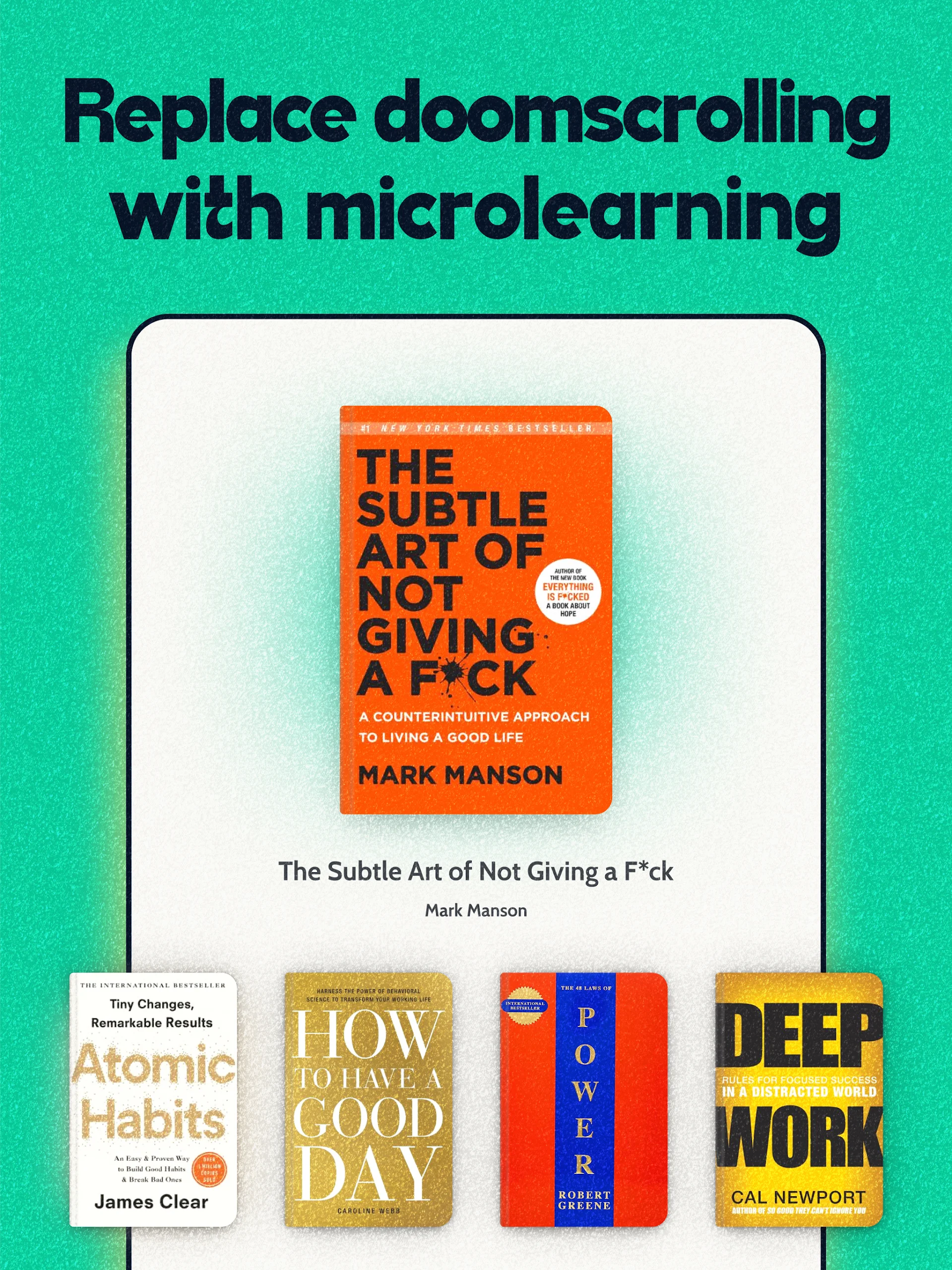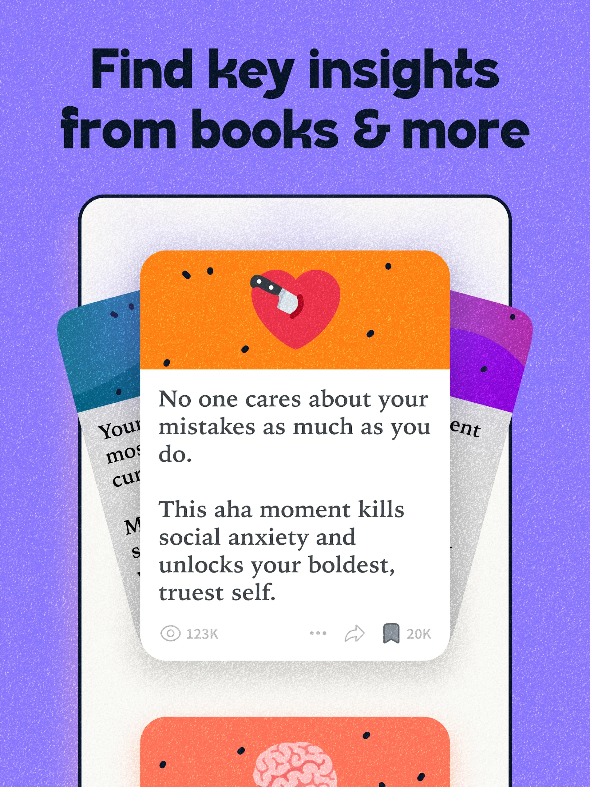 Discover new knowledge and insights in just 5 minutes a day with access to over 200,000 ideas sourced from top books, articles, podcasts, and videos.