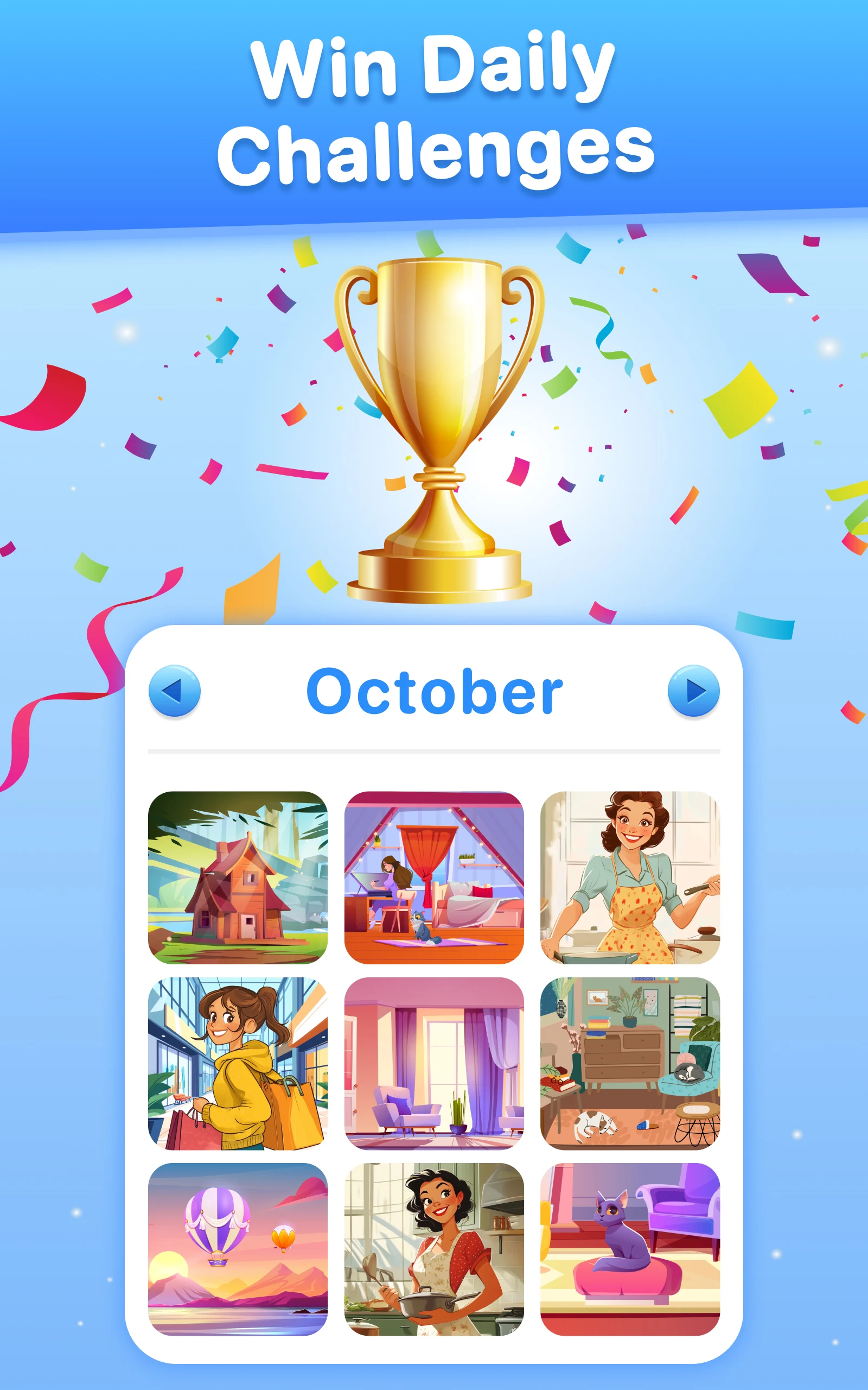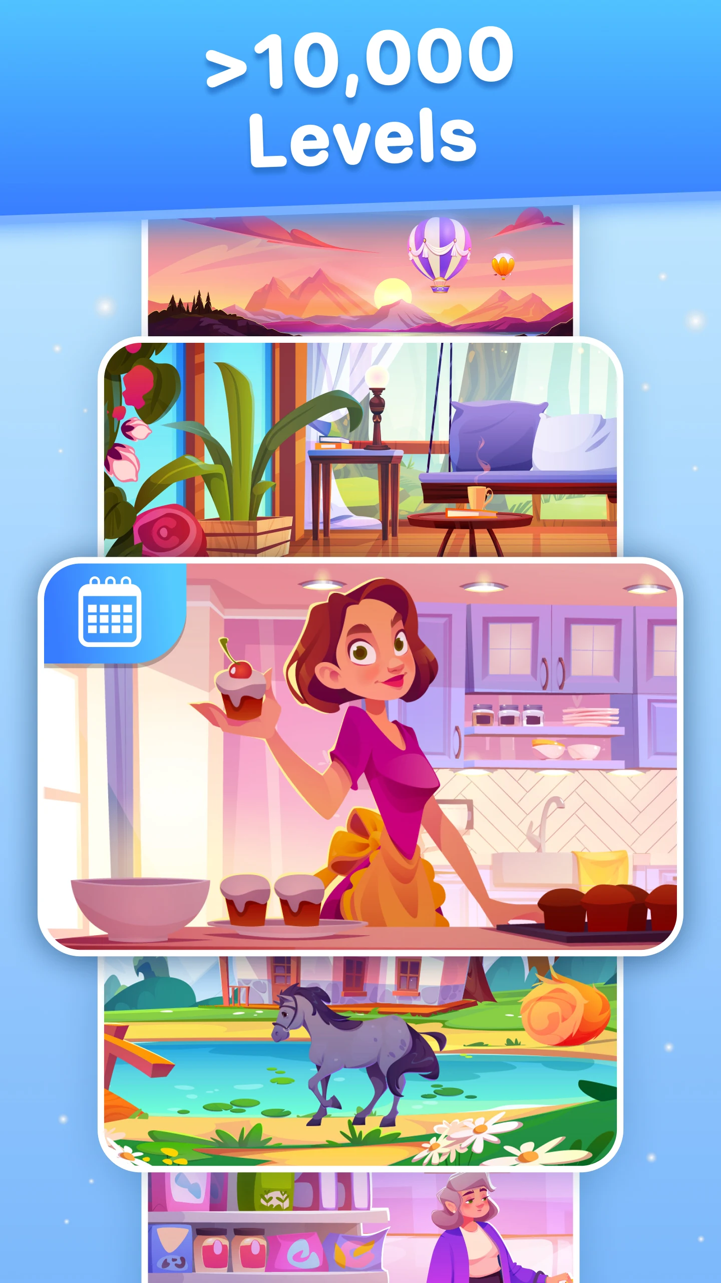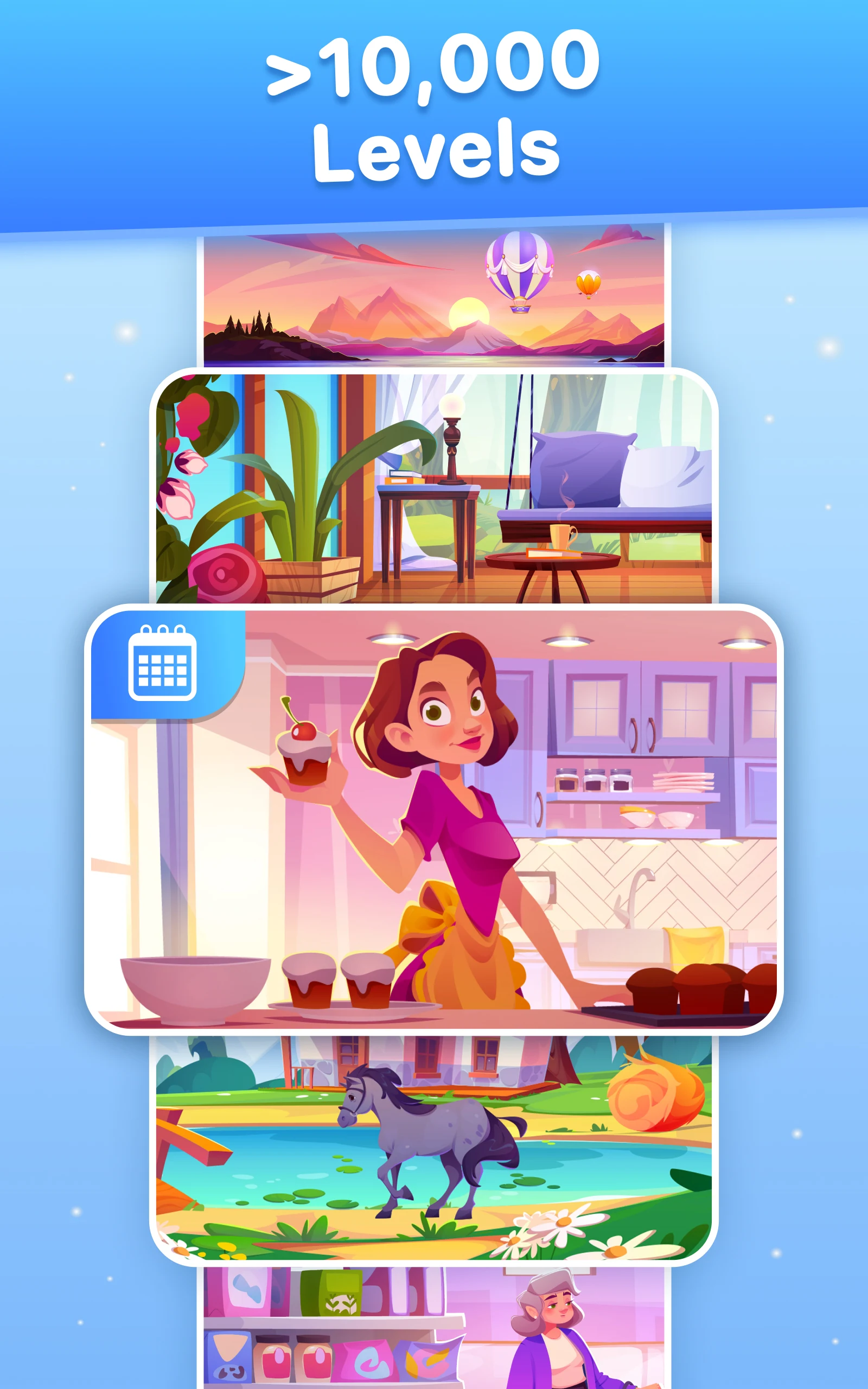 Embark on a journey of unique pictures and daily puzzles that will sharpen your concentration and attention. Challenge yourself regularly, stimulate your brain, improve logic, and explore a wealth of fun and entertaining levels!