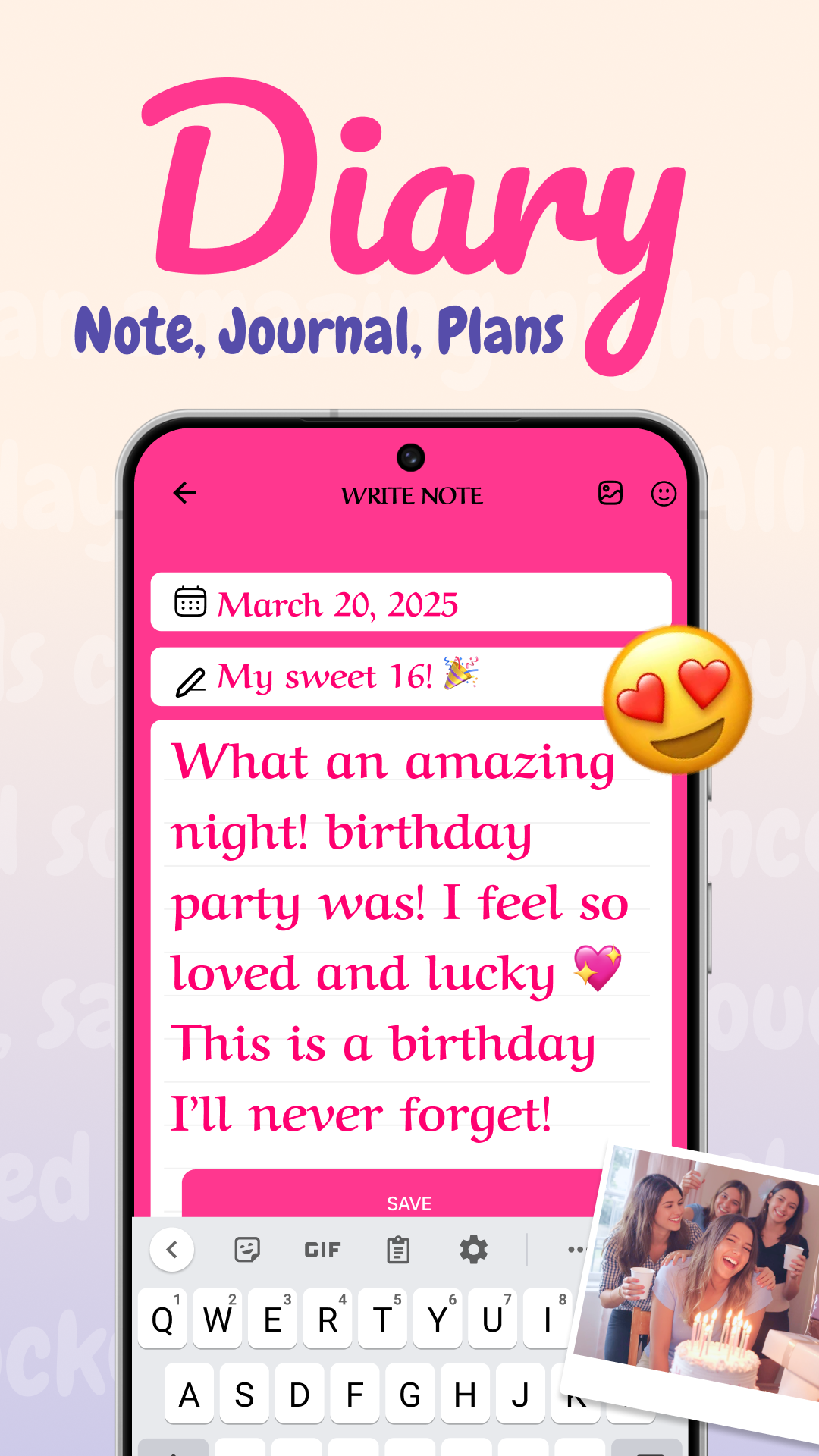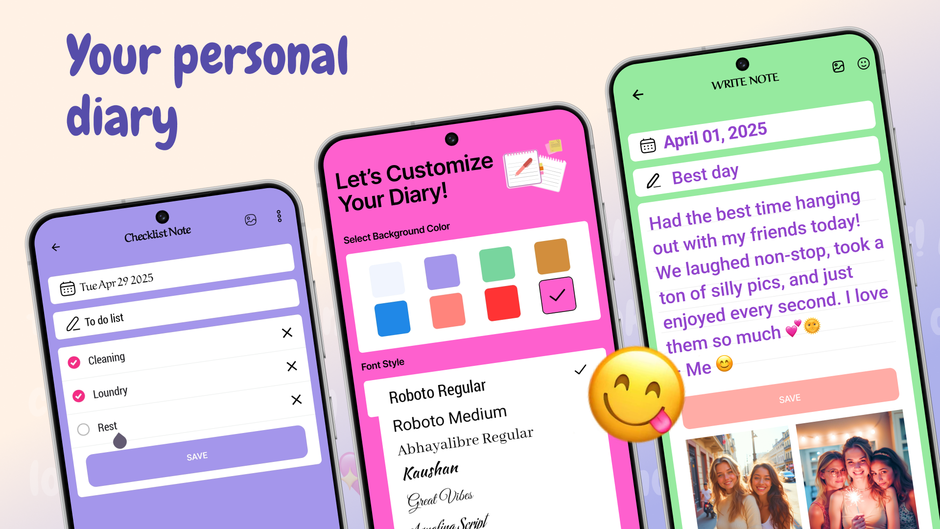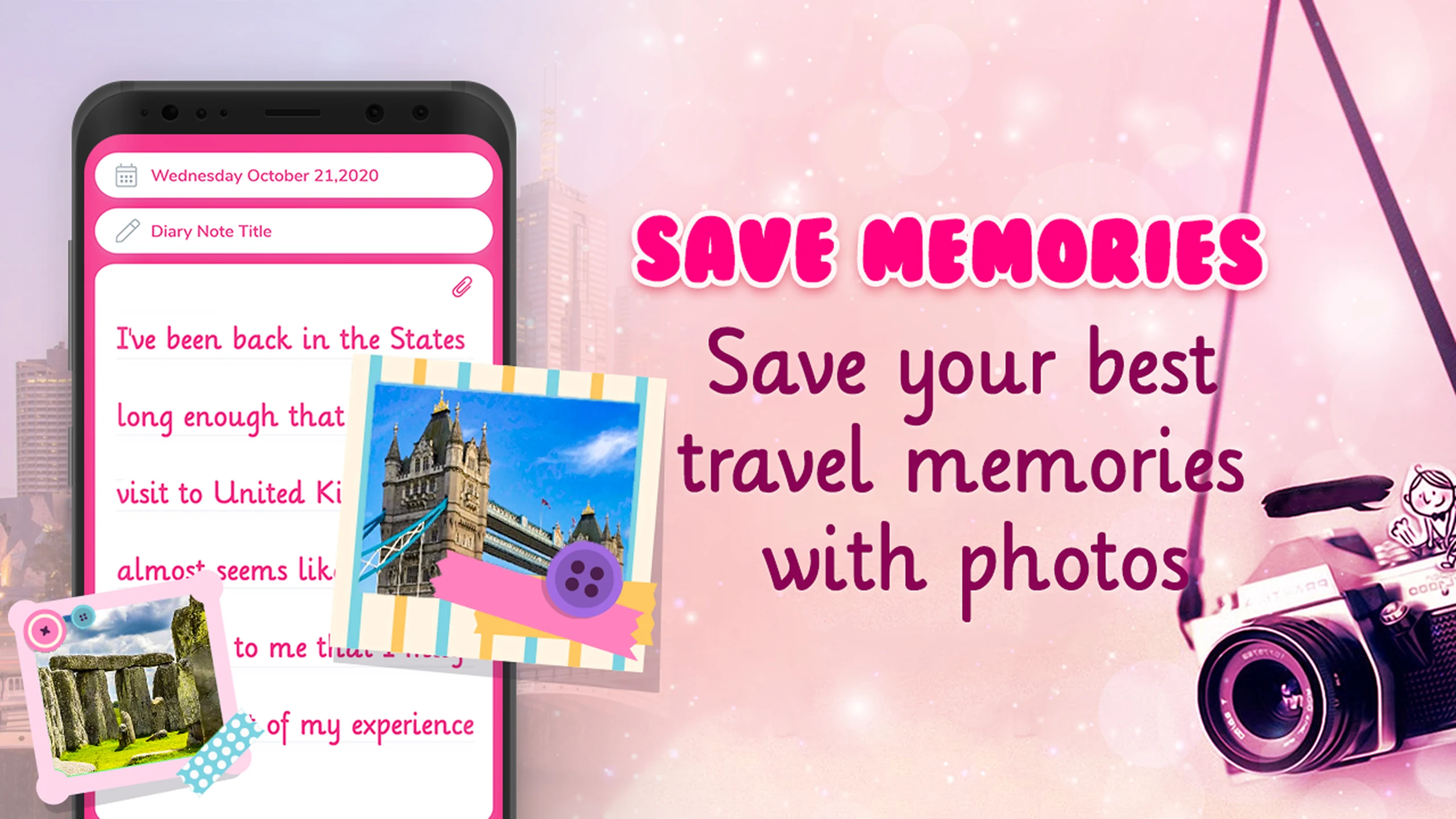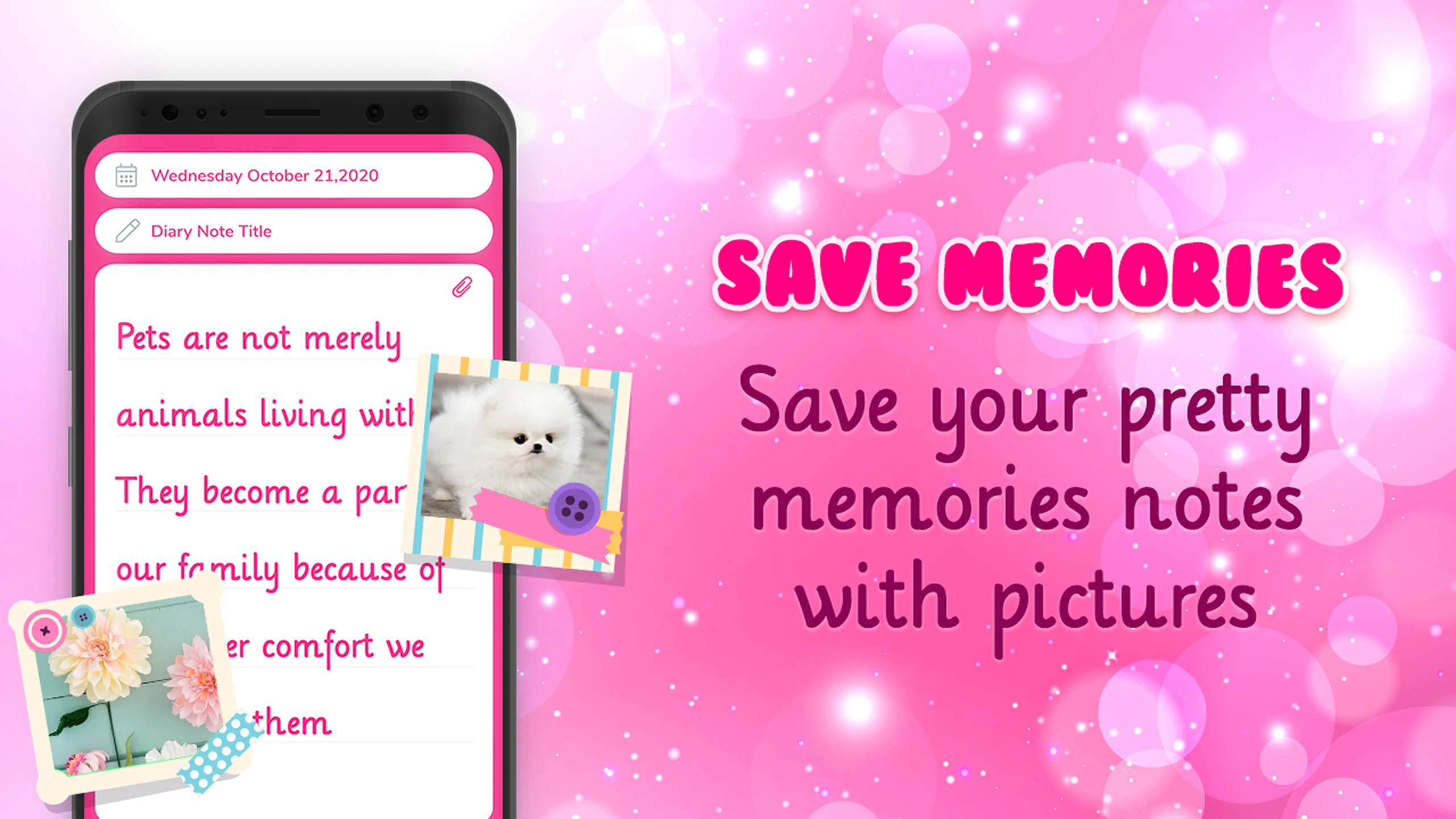 My Personal Diary with Lock, Photos, Themes can sync & store all your data to the cloud via google drive. Save your sweet memories forever! You can check your diary & notes even by using multiple devices now.