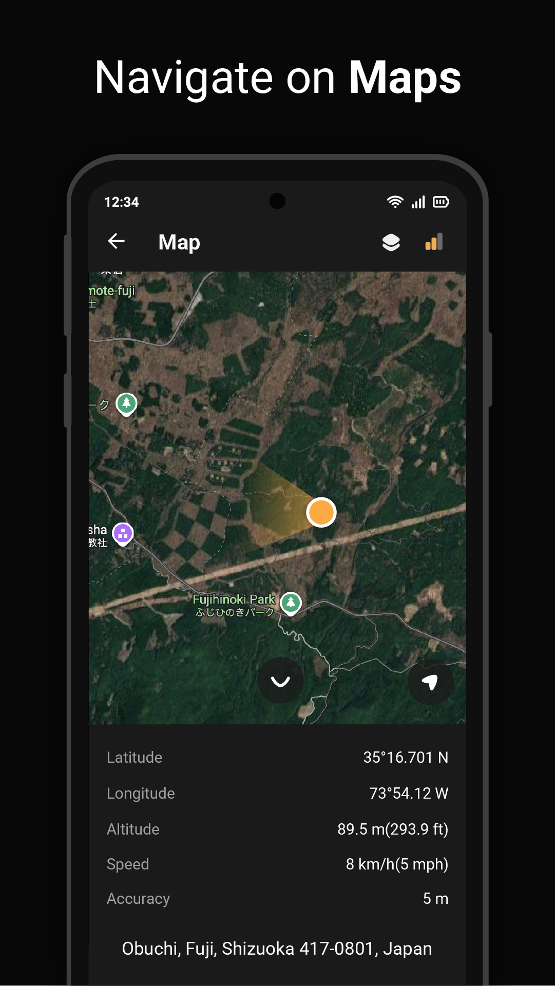 • Complete Data Set: Effortlessly access your current location details (longitude, latitude, address) and altitude.