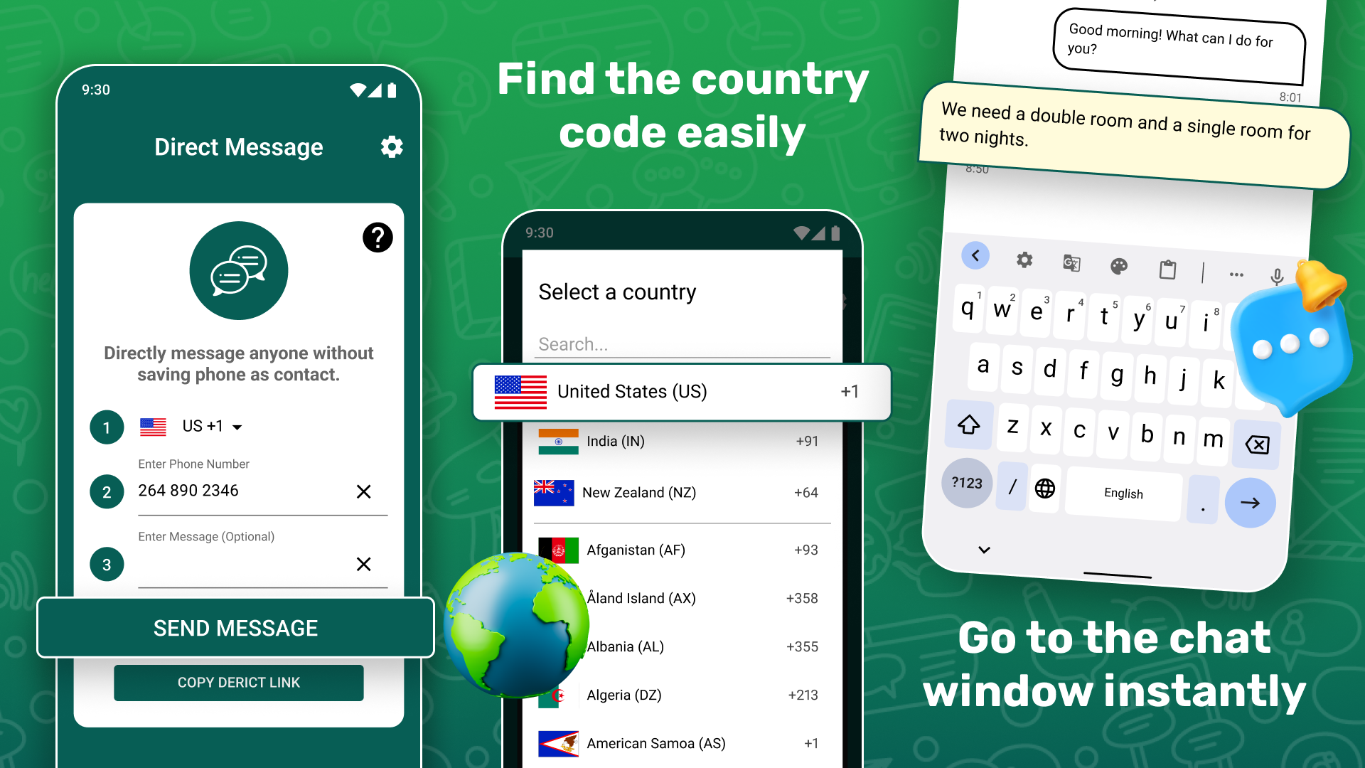 - The Direct Chat & Messaging app allows you to send messages to any user without needing to save their phone number.✉️