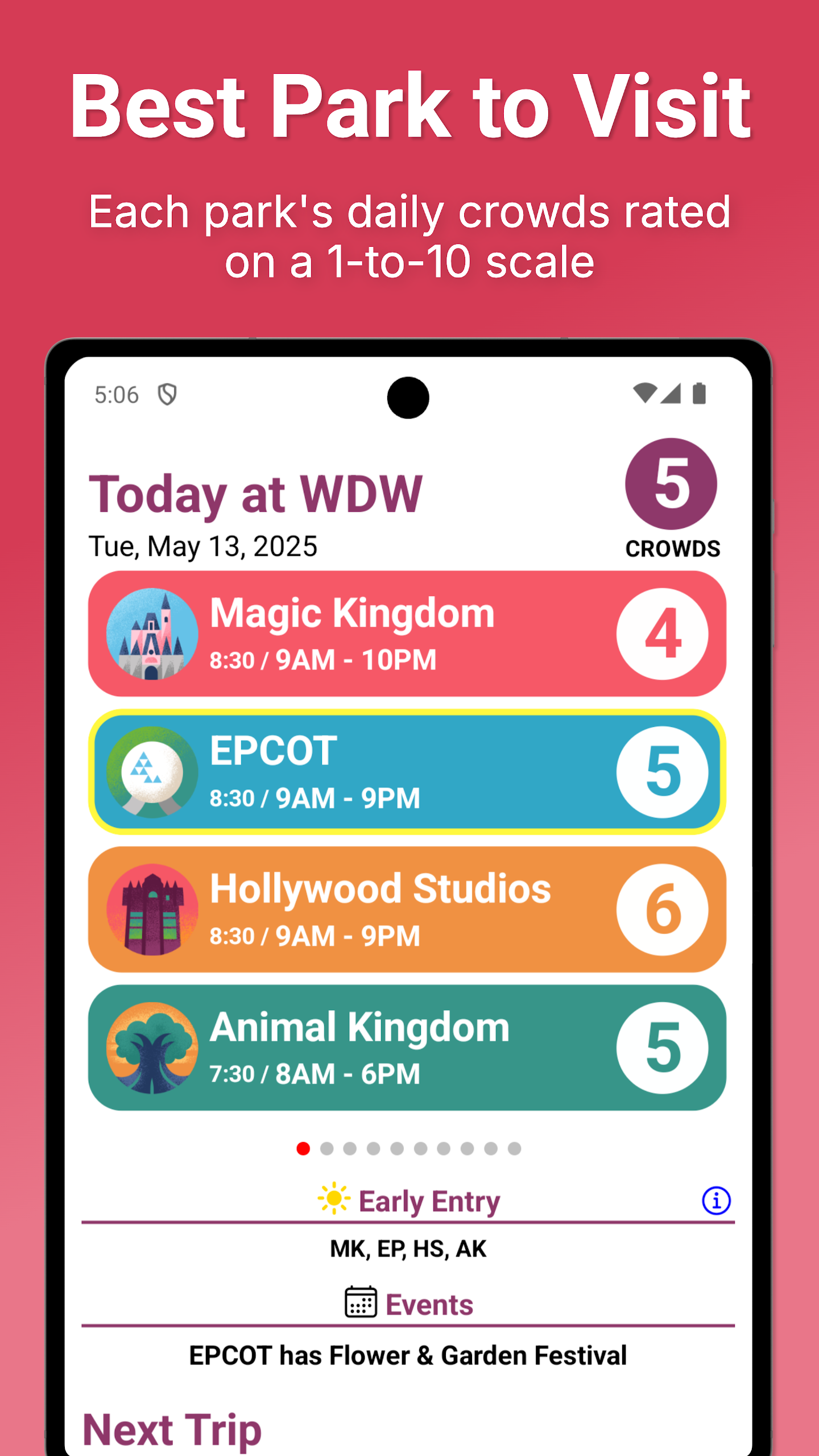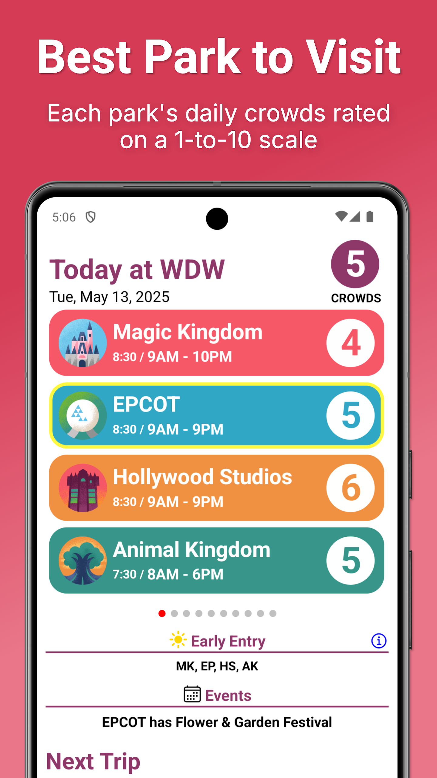 - A Crowd Calendar that predicts how busy each park is expected to be over the next ten days.