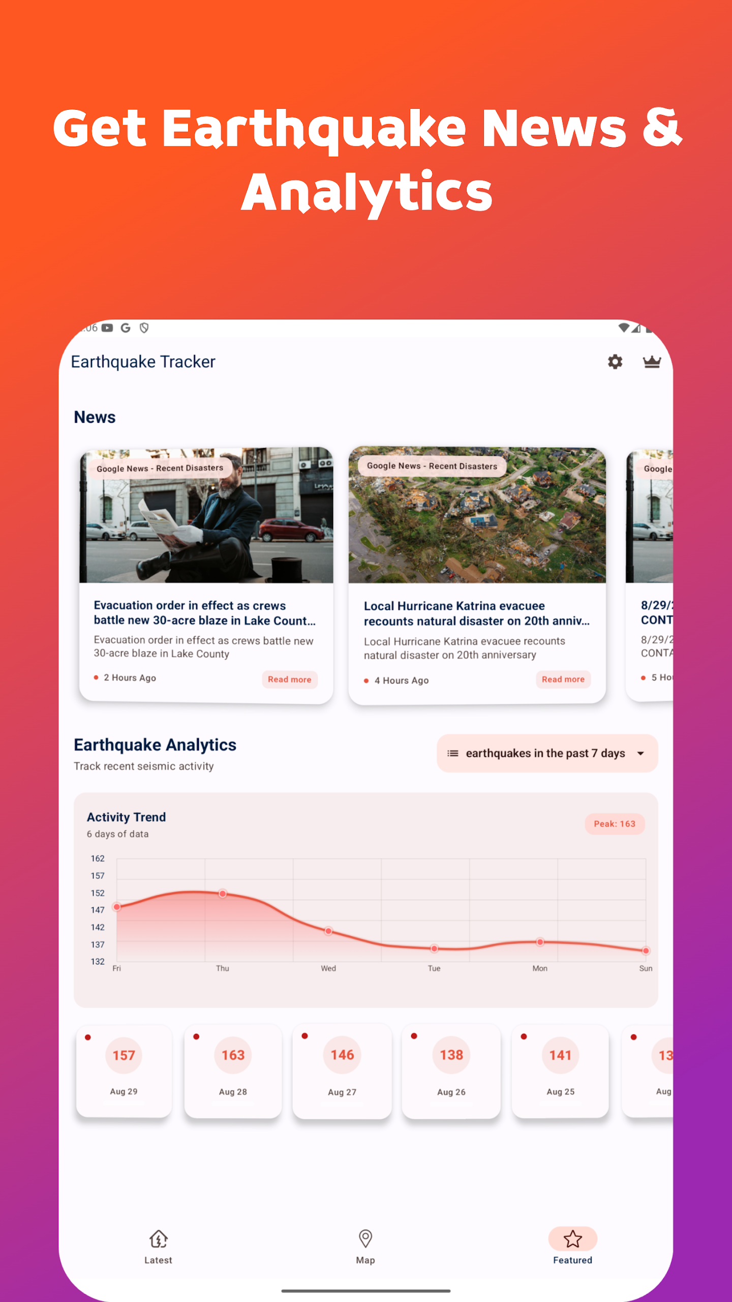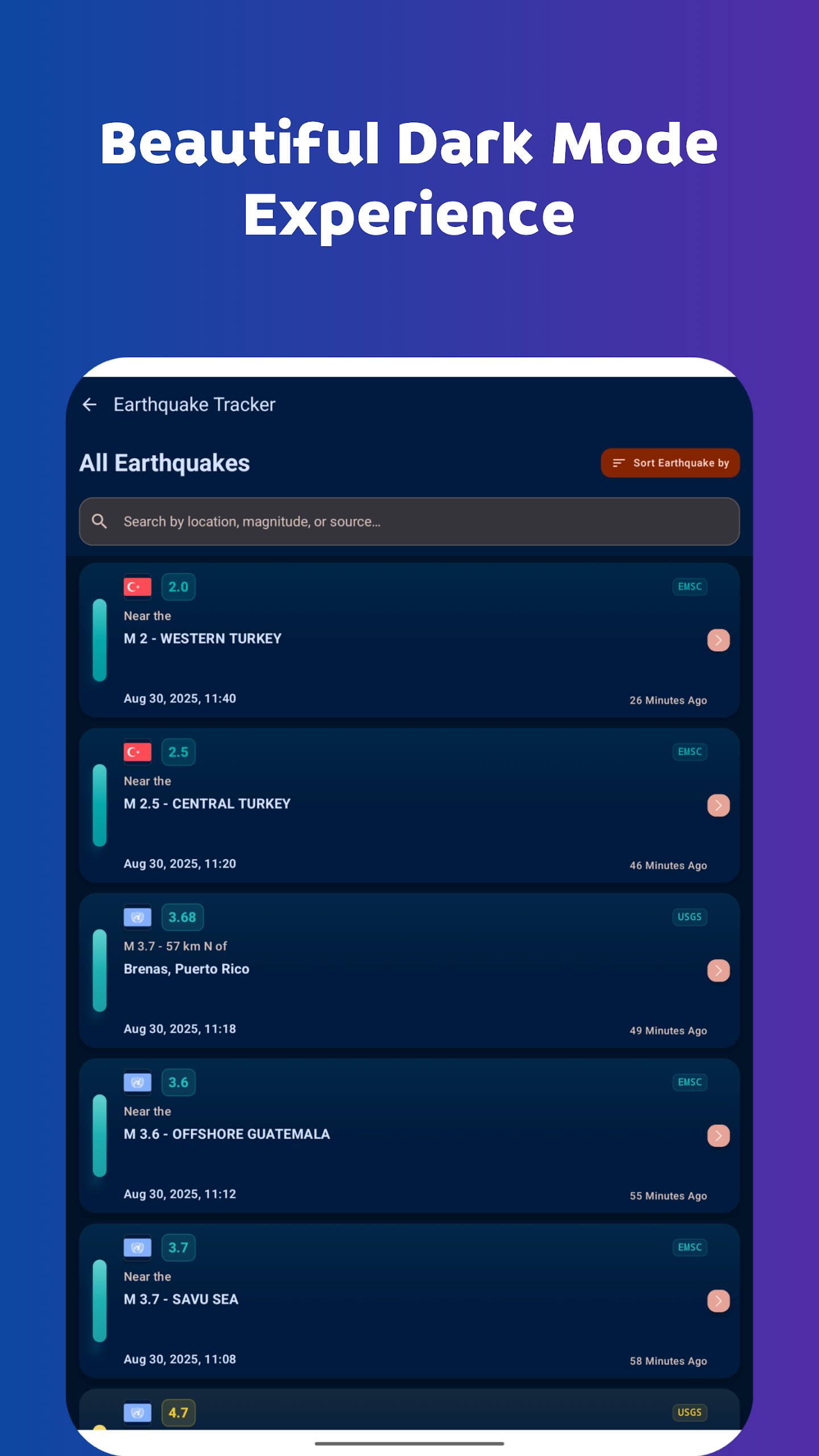 Keep yourself updated on seismic events with our advanced earthquake tracking application. Receive immediate notifications for earthquakes, navigate through interactive maps, and oversee worldwide seismic activity utilizing trusted sources.