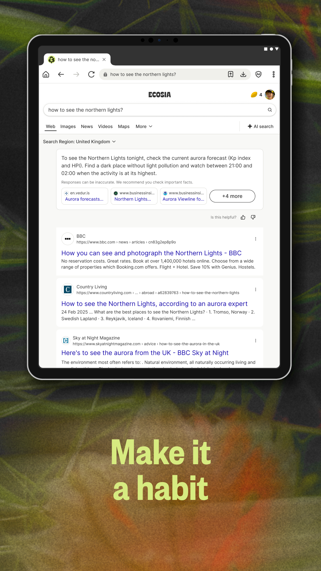 Make a difference, one search at a time. Ecosia, not your ordinary search engine.