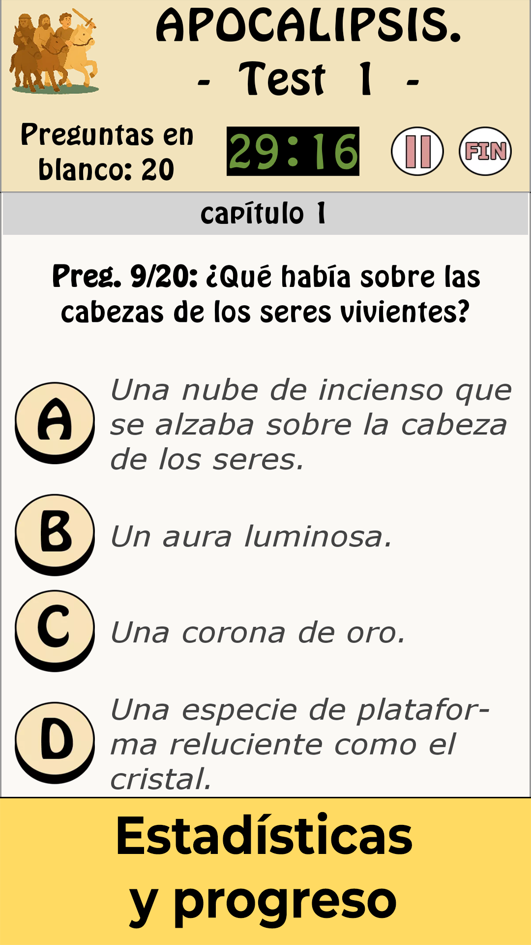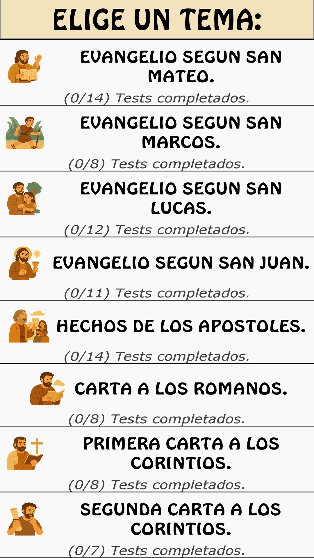 As you progress, you will have more statistics about your answers, so you will know how much you got right or wrong in each part. Thanks to this, you can focus on a specific part of the Bible to improve your knowledge of any gospel, for example. Find out who said what or the lives of the most relevant biblical characters related to the history of Christianity.