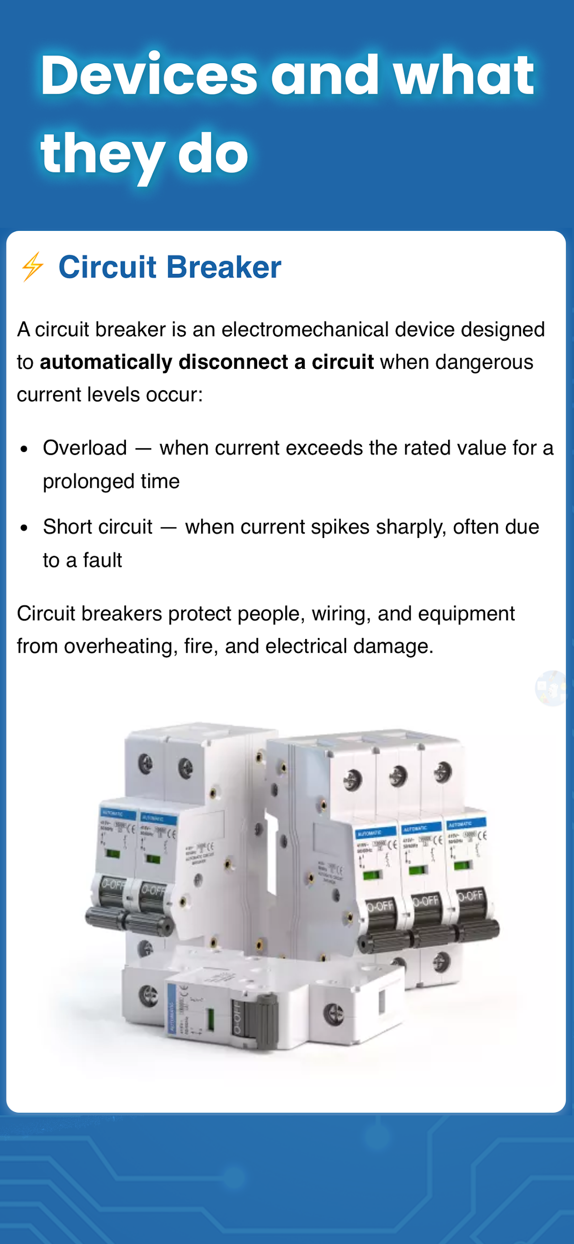 📚 Educational Material: Learn about electronic symbols, safety devices, and installing switches.