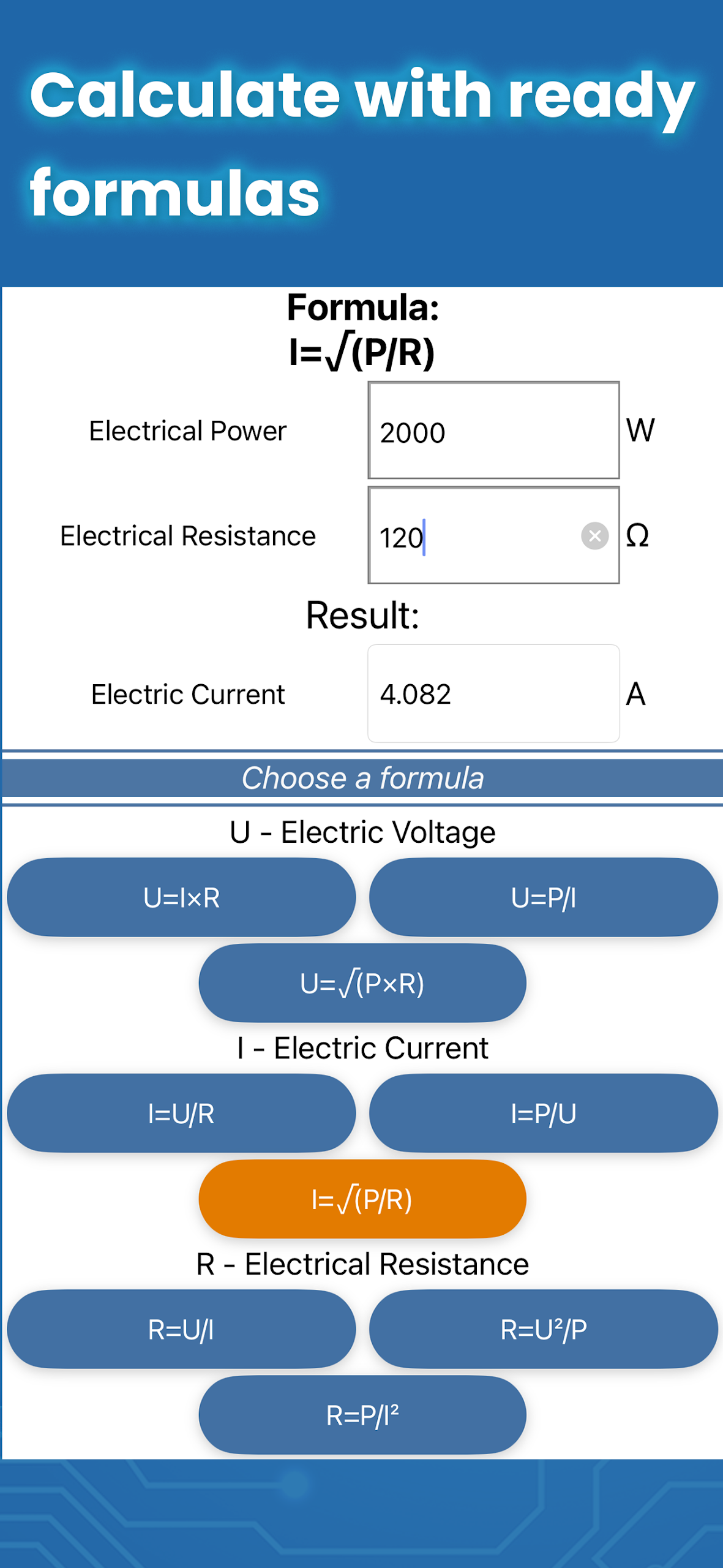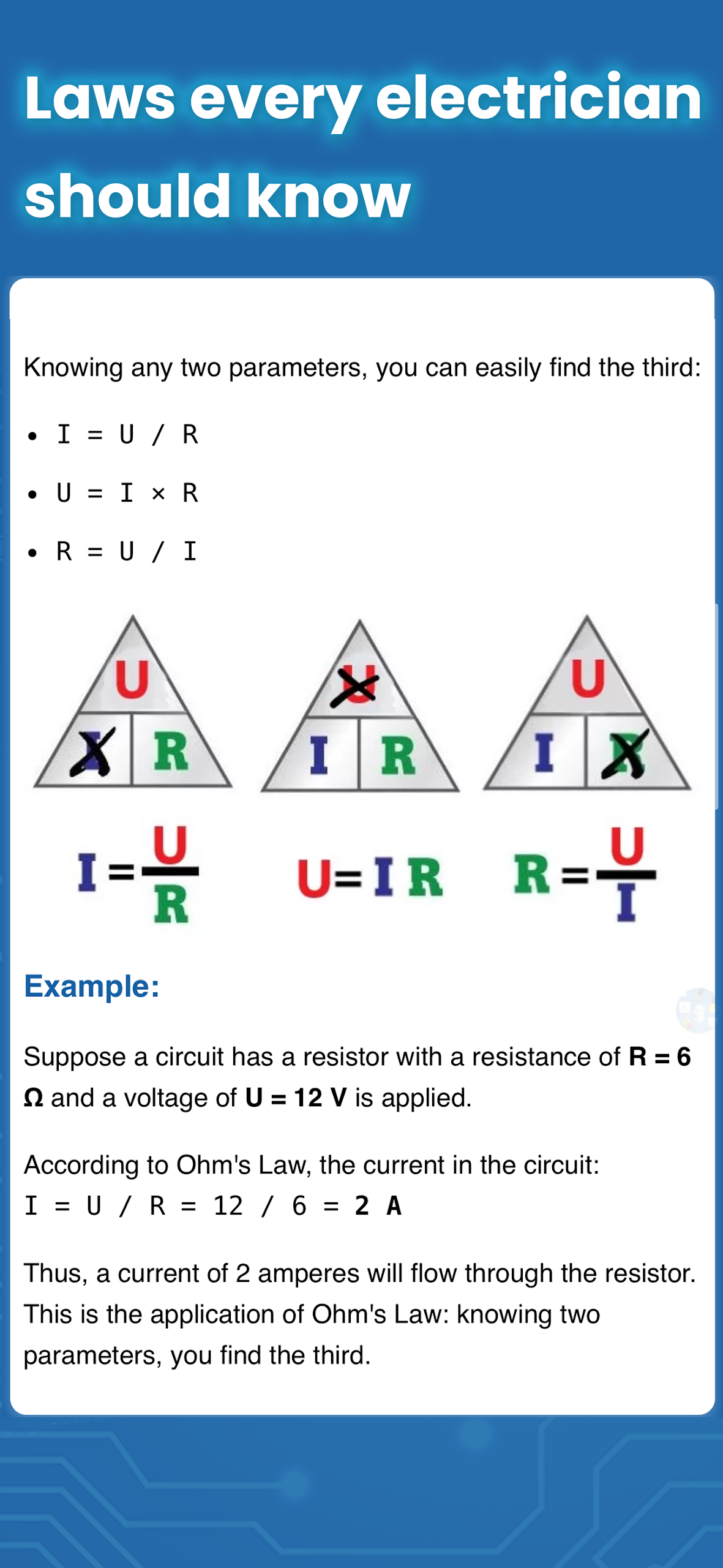 🧮 Access calculators for basic formulas, electricity cost, Ohm's Law.