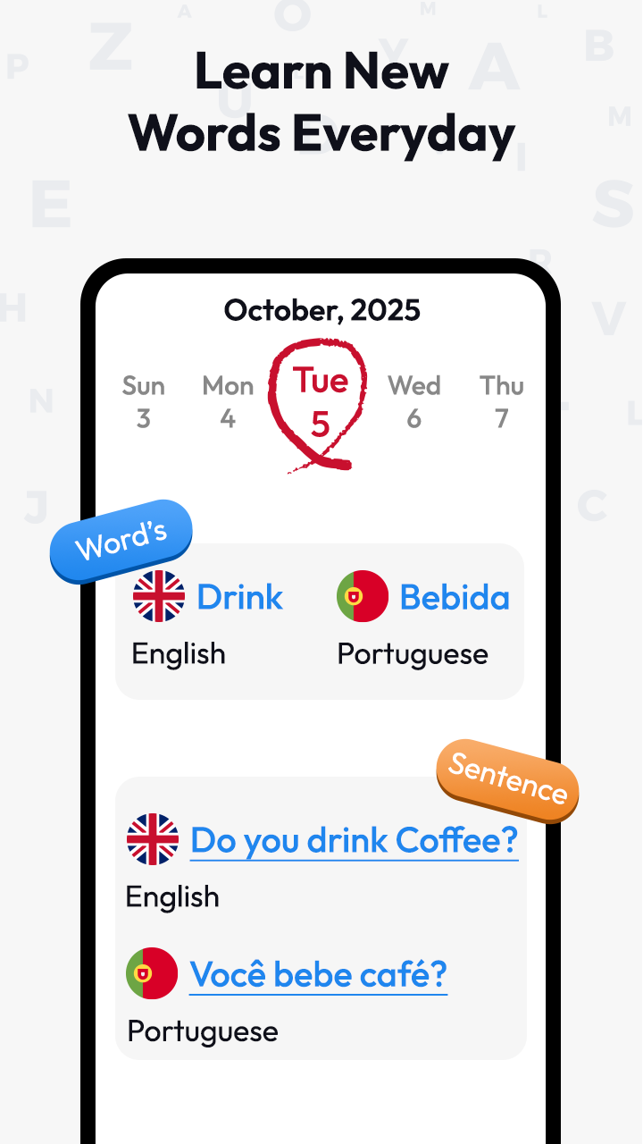 With this function, you can translate words and convert entire English sentences into Portuguese. Additionally, you can copy any English sentence and paste it directly for Portuguese translation, facilitating communication through this Learn English app or English to Portuguese Translator.