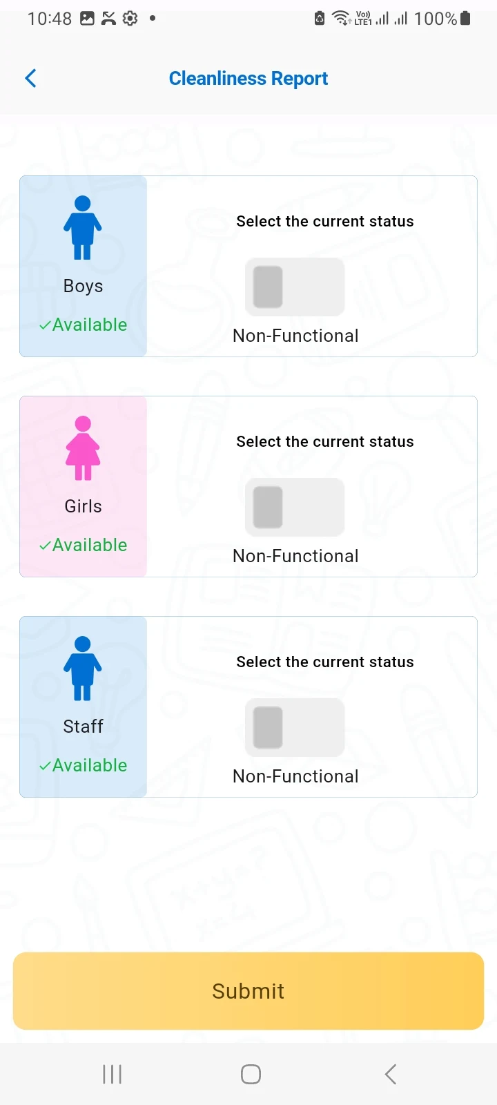 The attendance module is robust and straightforward, allowing daily recording for both teachers and students with minimal effort, while the ability to review historical records on-the-go has proven invaluable during audits and reviews. Where the app truly shines, however, is in its dedicated support for the Mid-Day Meal (MDM) and cleanliness reports—features that are not only well-designed but critically important for compliance and transparency. Submitting daily reports feels less like a bureaucratic task and more like a natural part of the school routine thanks to the app’s thoughtful layout and guidance. It’s an essential tool that empowers schools to meet government mandates efficiently while keeping the focus where it belongs: on education and student welfare.