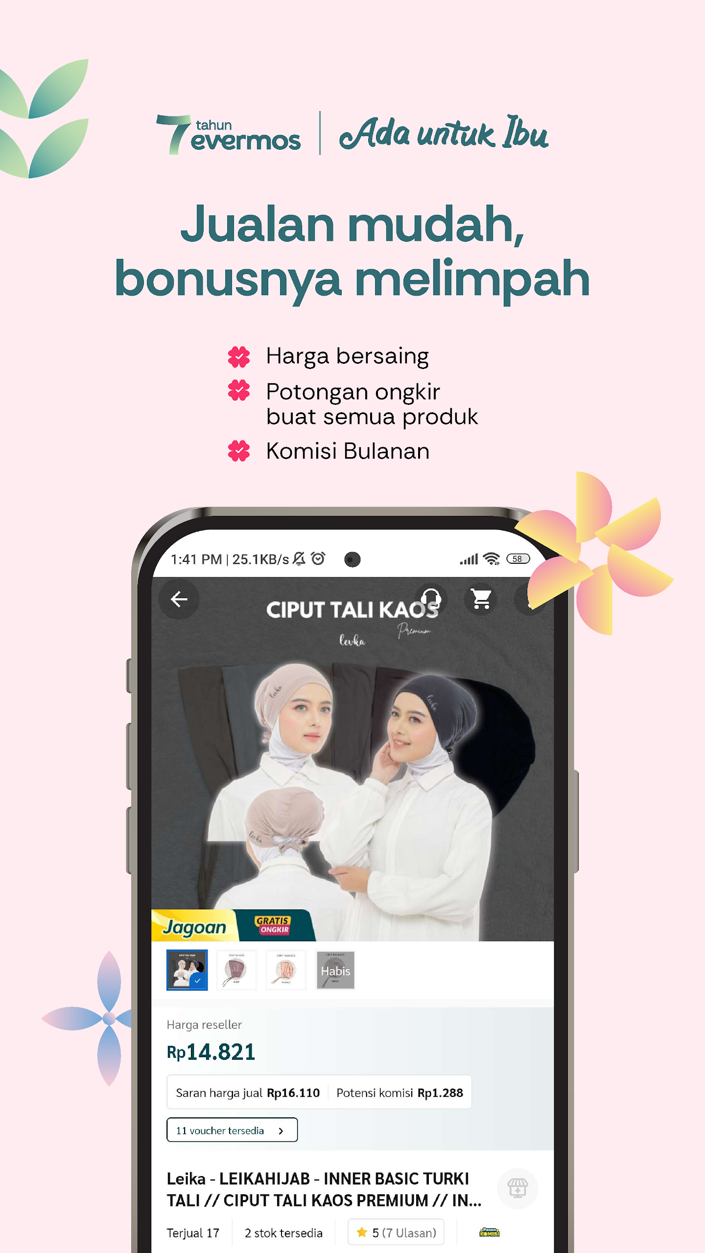 ✔️Free shipping and COD across Indonesia*, extra commissions, lowest prices, and shopping vouchers only on the Evermos app
