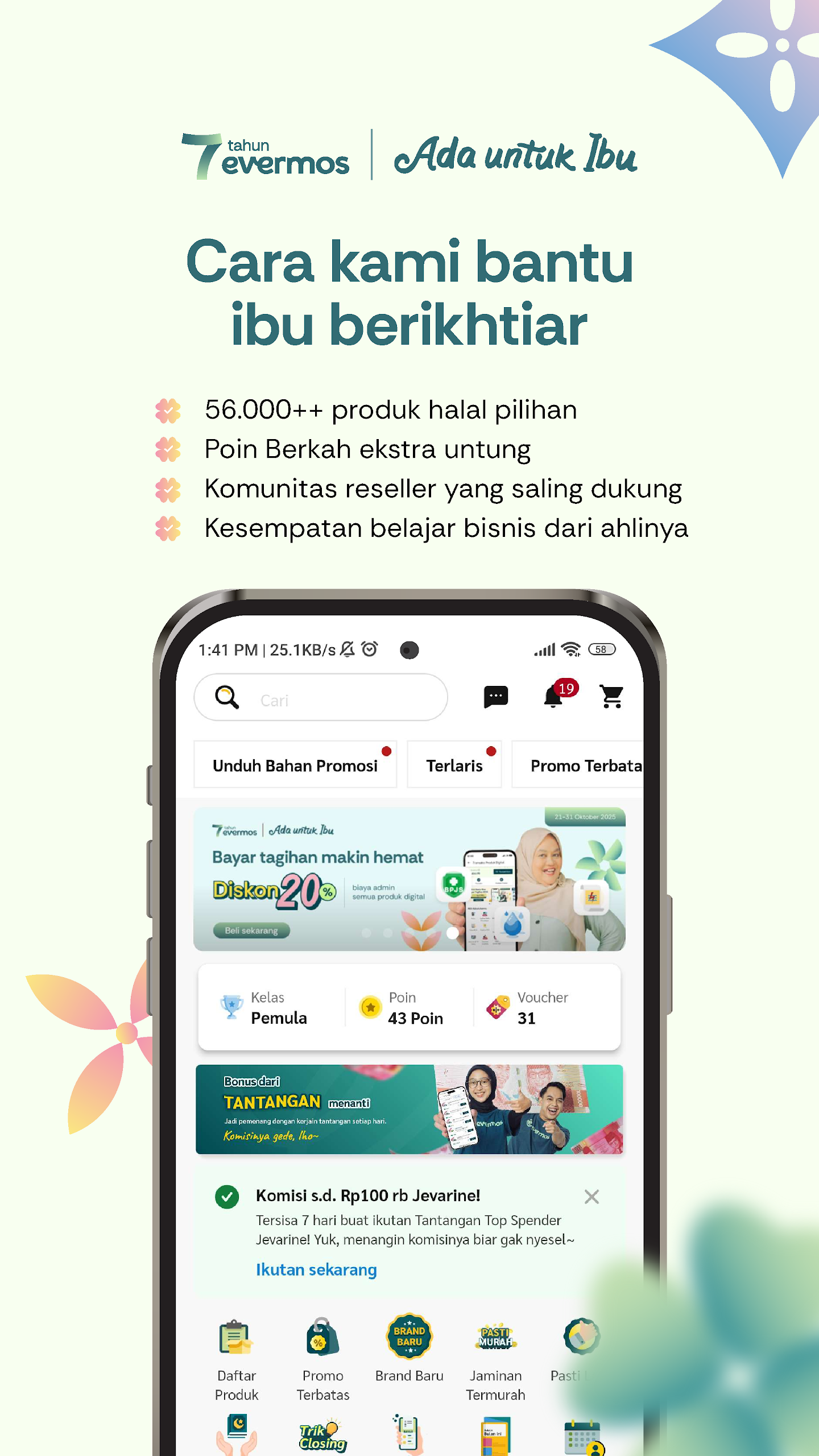 Download the Evermos app and discover more than 80,000 high-quality halal products and 700 original Indonesian brands! Also, enjoy intensive business learning classes that are ONLY available on EVERMOS!