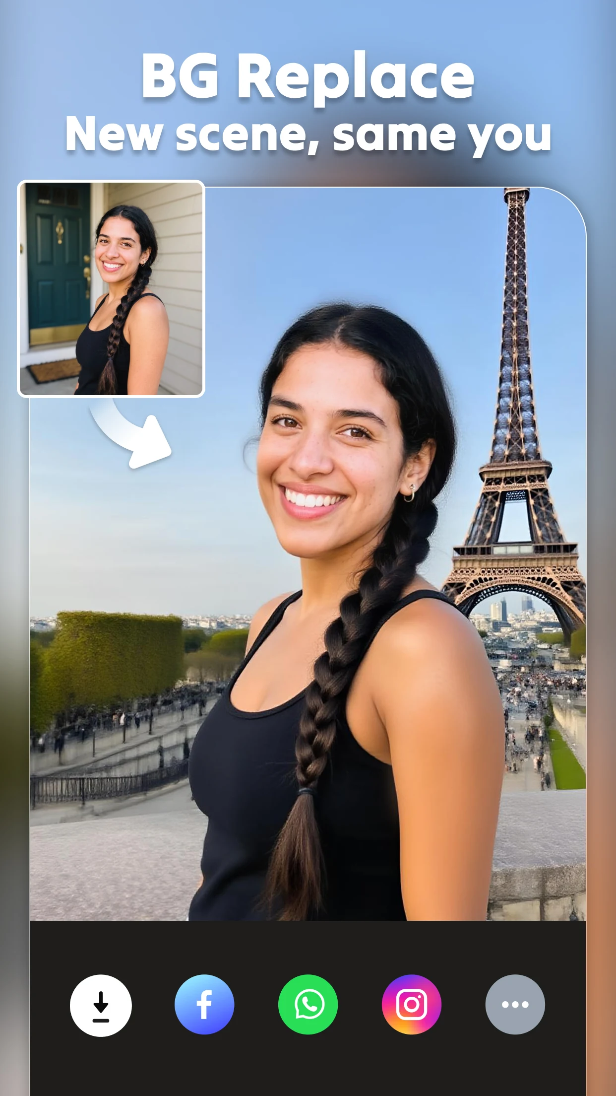 Your magical face-swapped video will materialize in no time! Save it to your device and boost your social media engagement by sharing it with a single click on Facebook, Instagram, WhatsApp, and more!