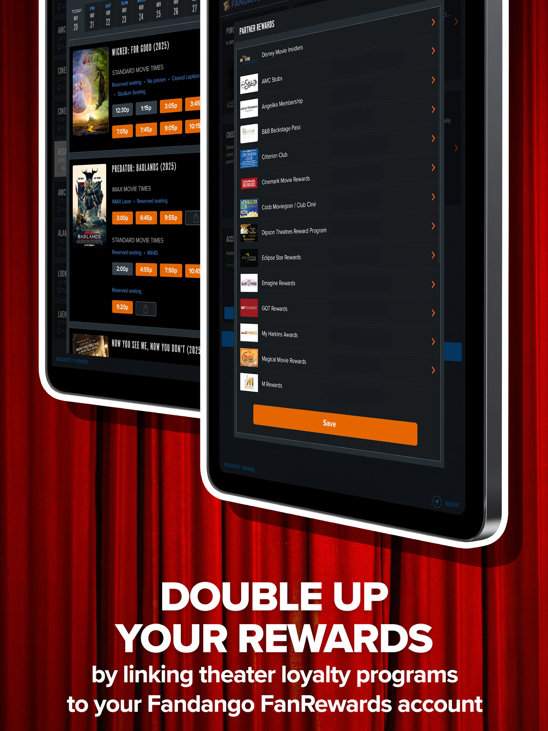 - Earn rewards for every ticket purchase at cinemas like AMC Theatres, Regal Cinemas, and more.