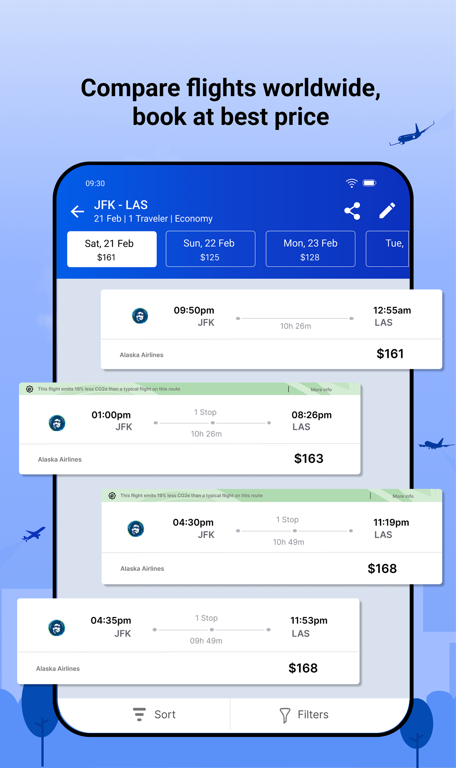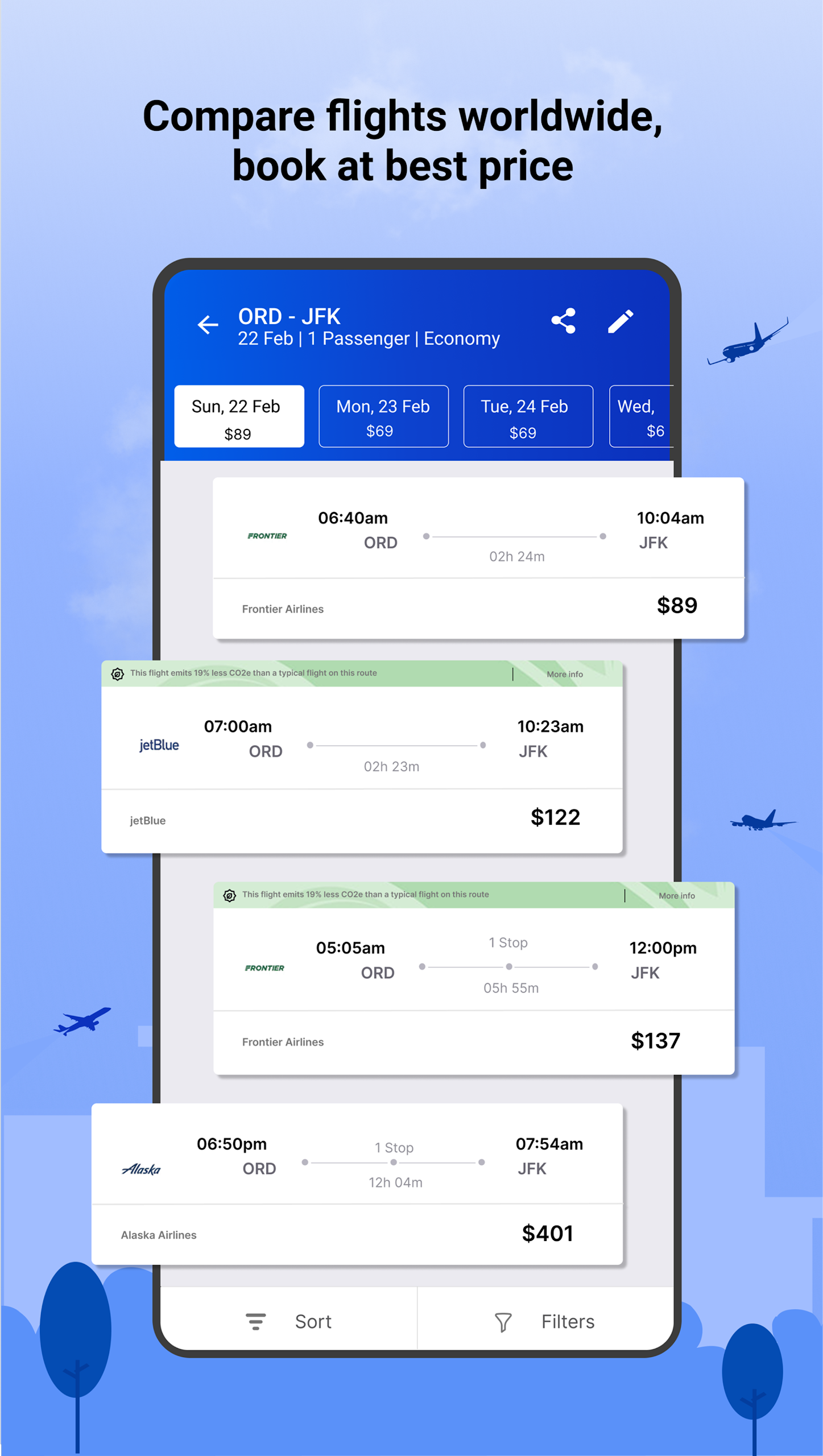 - Advanced filter option: Enables users to refine search results based on specific criteria such as timing, budget, and carrier preferences.