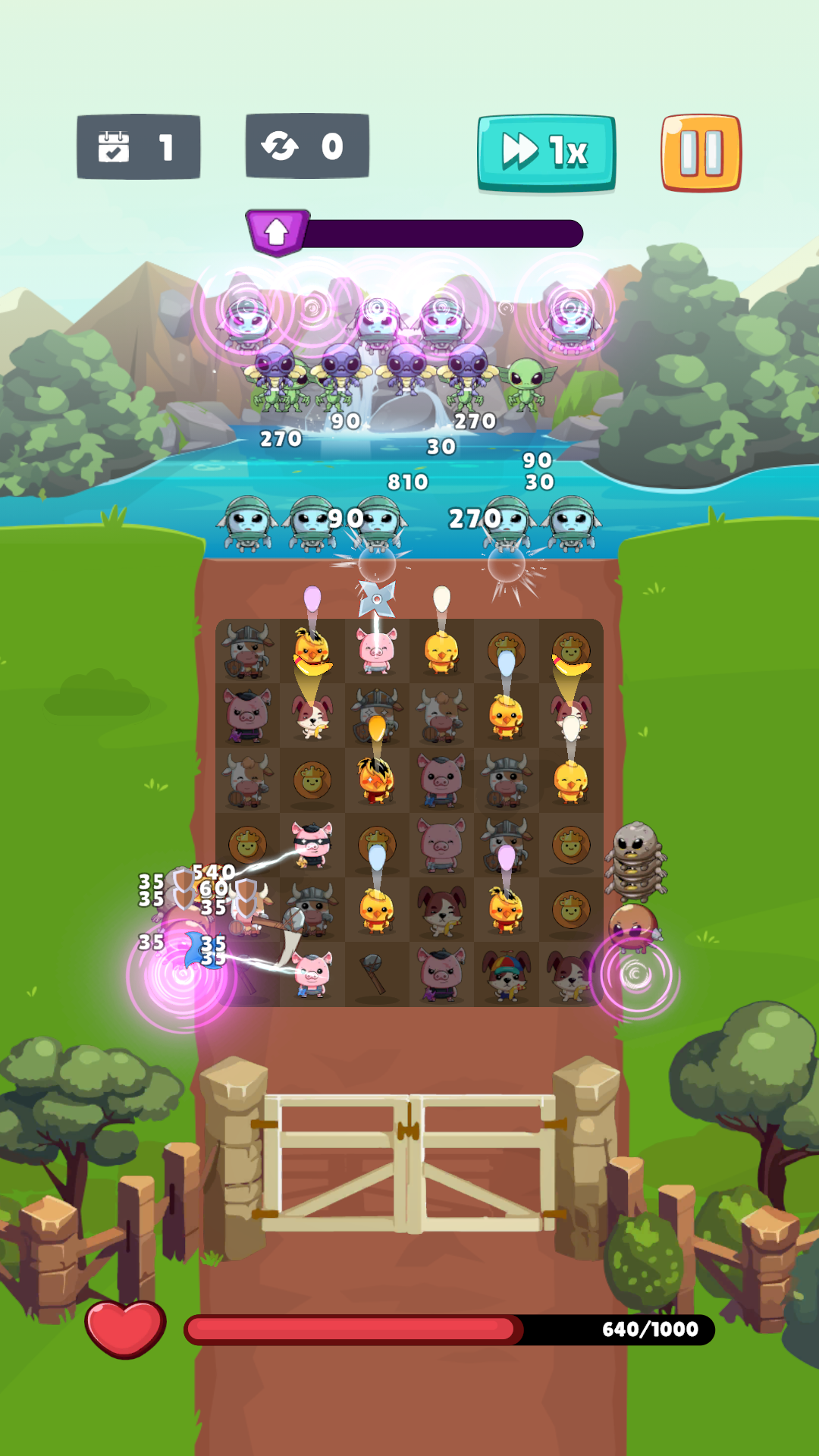Join quirky farm animals in epic battles against invaders through merging, strategy, & skillful defense tactics.