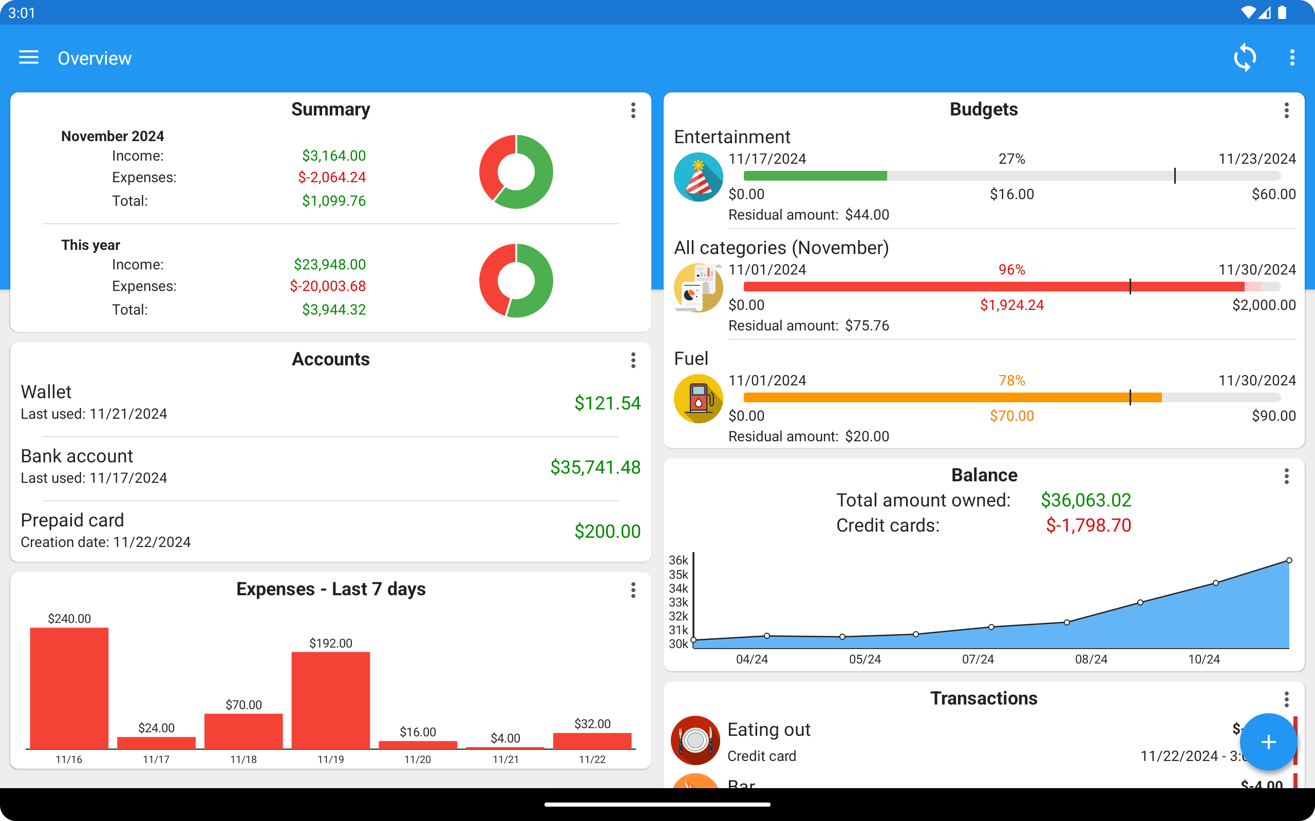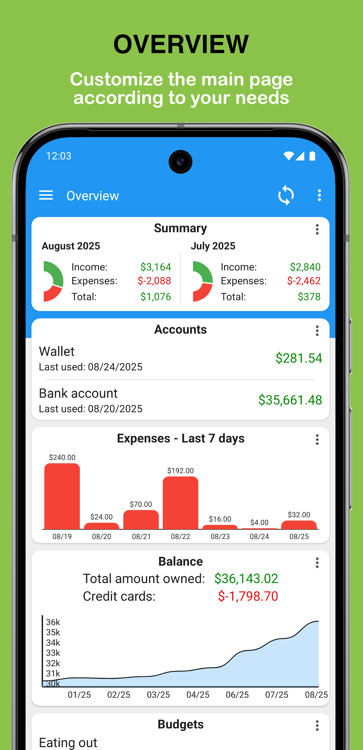 Easily manage your personal or family finances using Fast Budget. Monitor daily expenses, boost savings, and get a clear overview of your money flow with customizable charts on the Overview page. Sync data across devices, connect bank accounts, and enjoy tools like various charts and a handy calendar for effective money management.