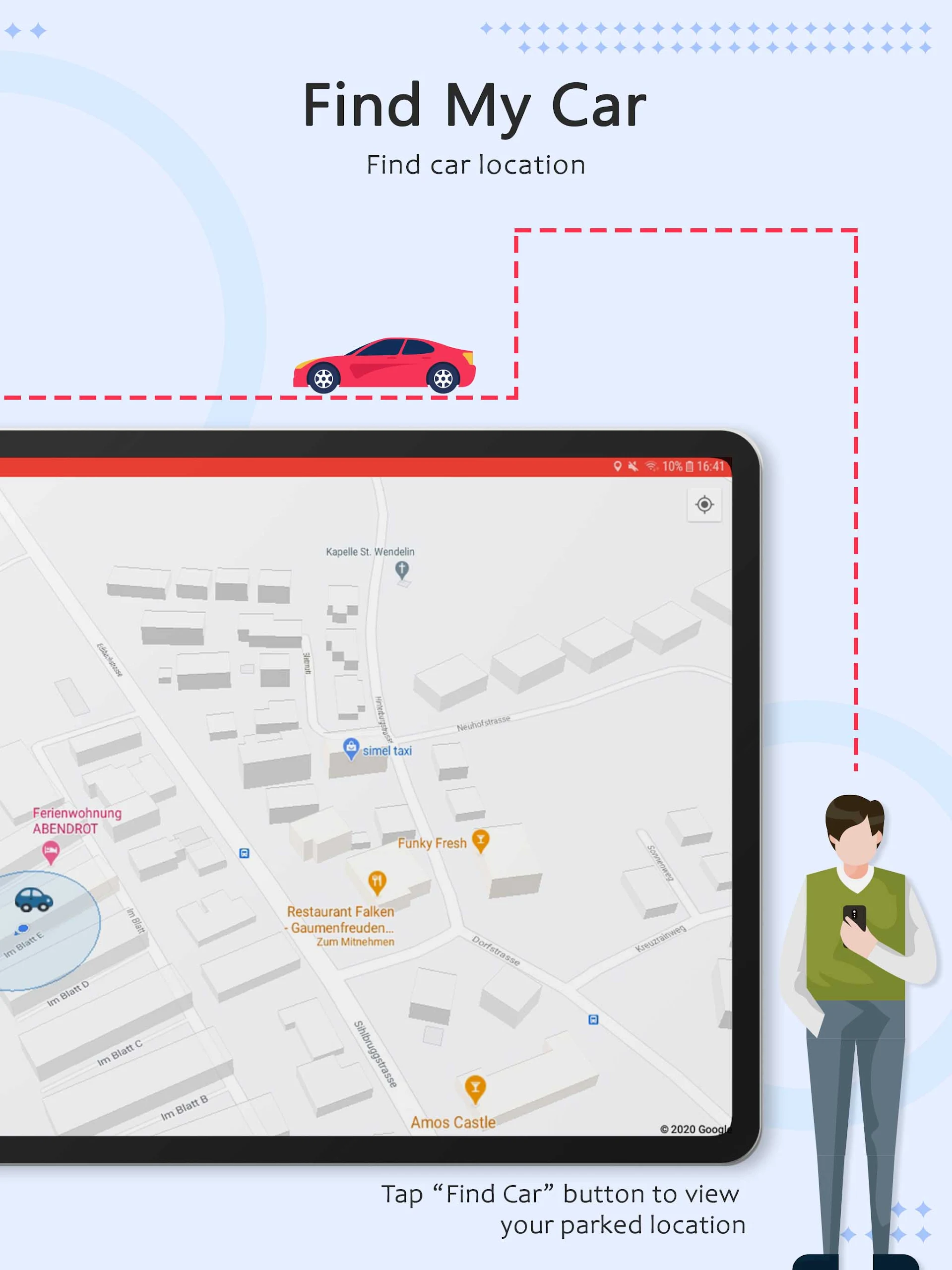 Effortlessly find your parked car with one click! Save locations, get directions, and never lose track again.