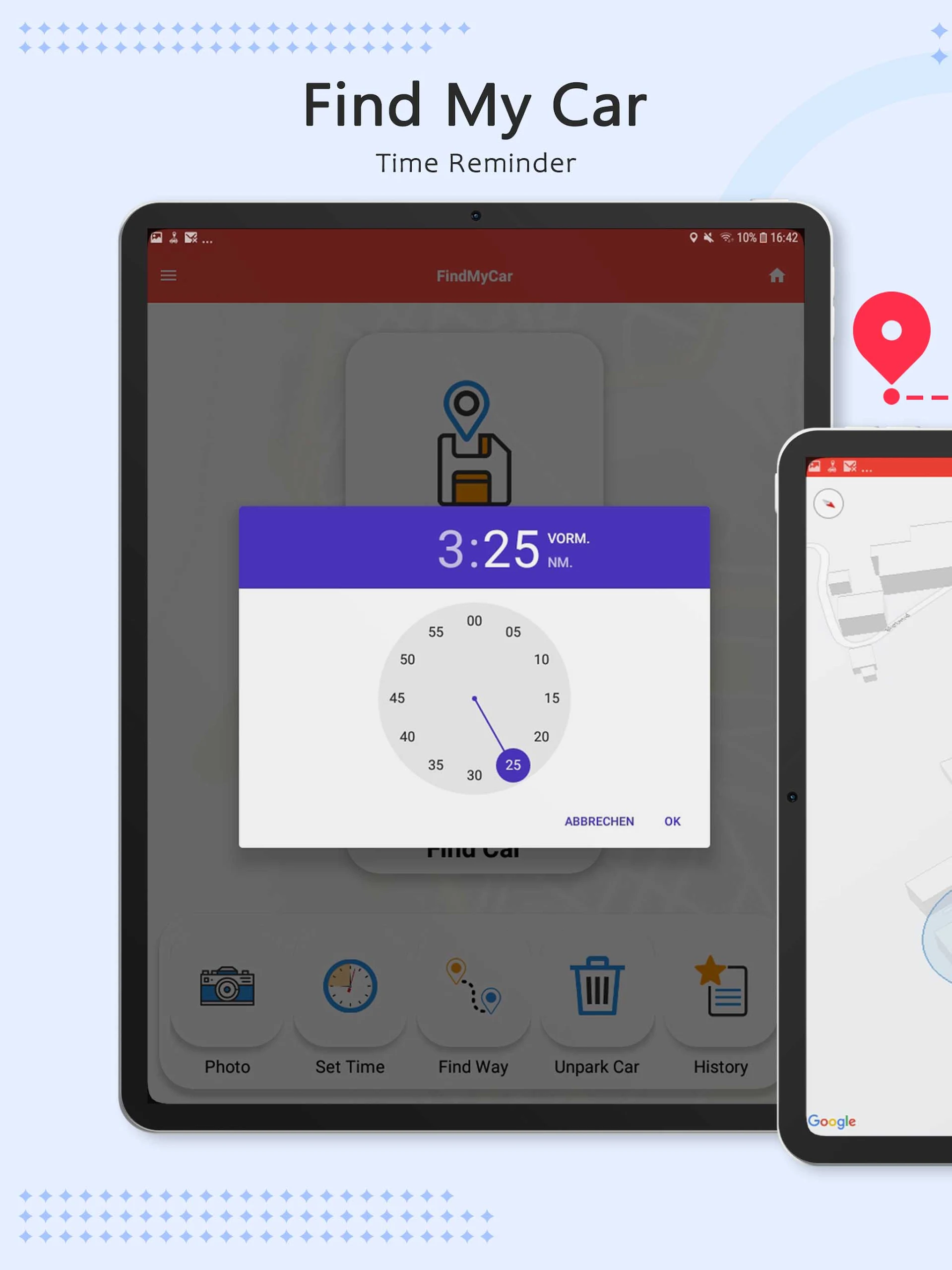 Find my Car – Car Locator by Visunia GmbH is a parking assistance app designed to help you effortlessly remember and retrieve where you parked. With a one-tap “Park” button, your vehicle’s GPS location is stored. Later, a single tap on “Find Car” brings up a map showing your car’s position and gives step-by-step navigation back. Additional features include a parking meter alarm, photo reminders of the spot, saved parking history, and the ability to mark favorite locations. The interface is minimal and intuitive. According to the developer, no user data is collected or shared, and all transmitted data is encrypted.