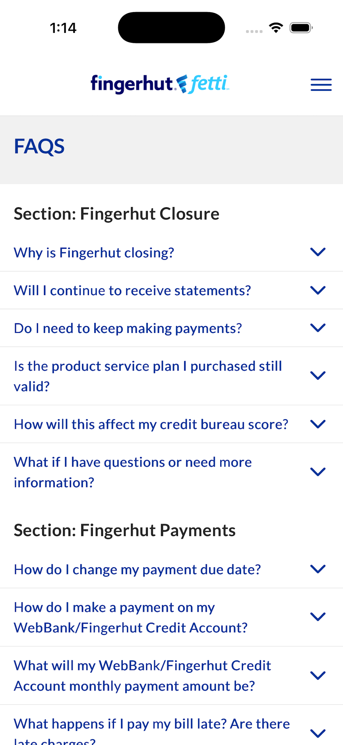 • Make payments on Fingerhut Fetti, Advantage, or FreshStart credit accounts
