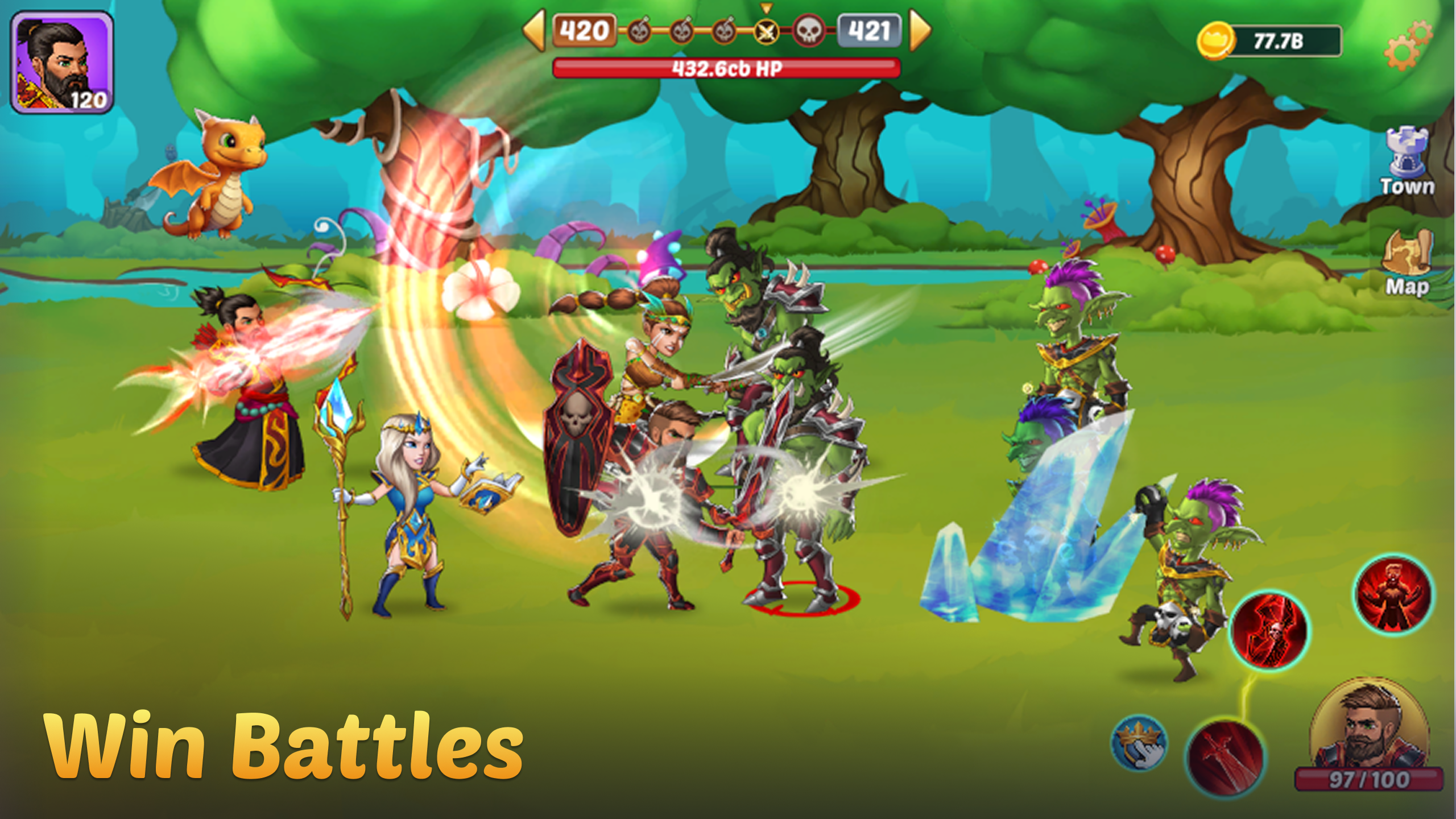 Conduct AFK research and create powerful runes or improve your heroes’ equipment: Significant incremental boosts can lead to the downfall of even the toughest bosses and enhance your standing in the hero wars at the Arena of Kings.