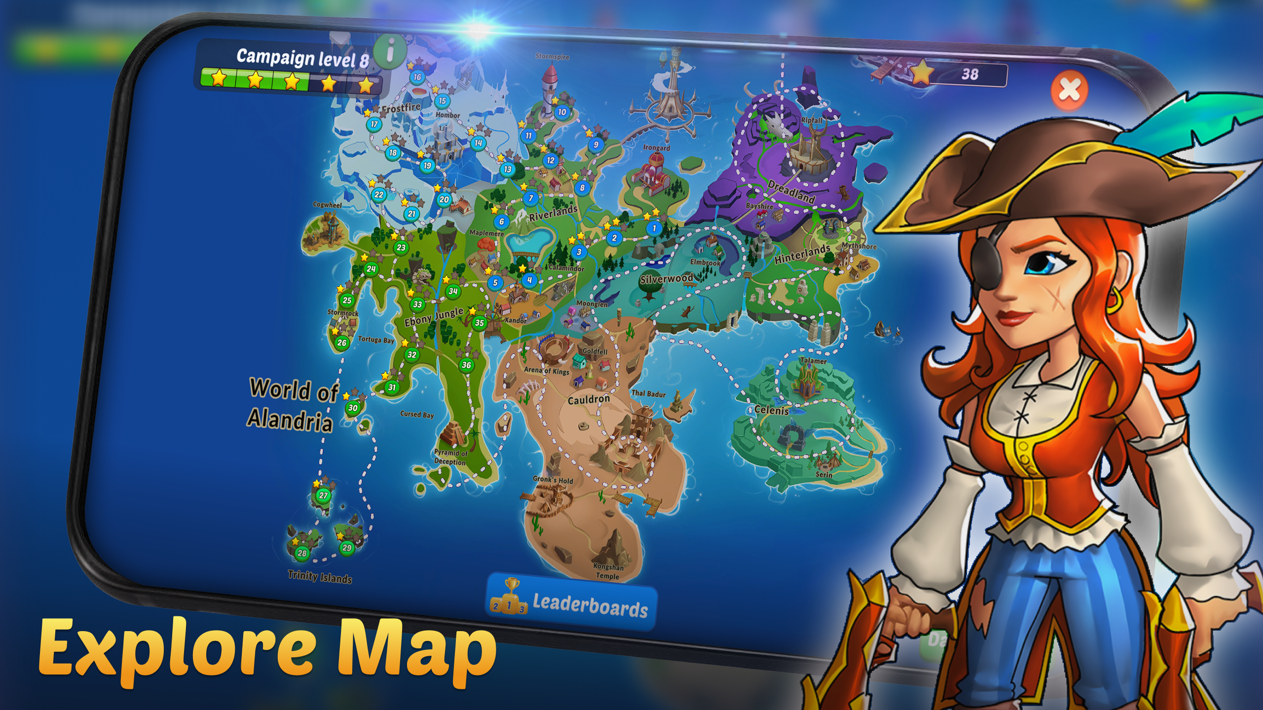 Delve into the Realm of Alandria: From the perpetual chill of Frostfire to the buccaneer's refuge in Tortuga Bay, or the lush Ebony Jungle, expect magical encounters at every turn. Be it dwarves, orcs, fairies, or the undead, tales abound about their adventures, with whispers of dragons also in the mix!