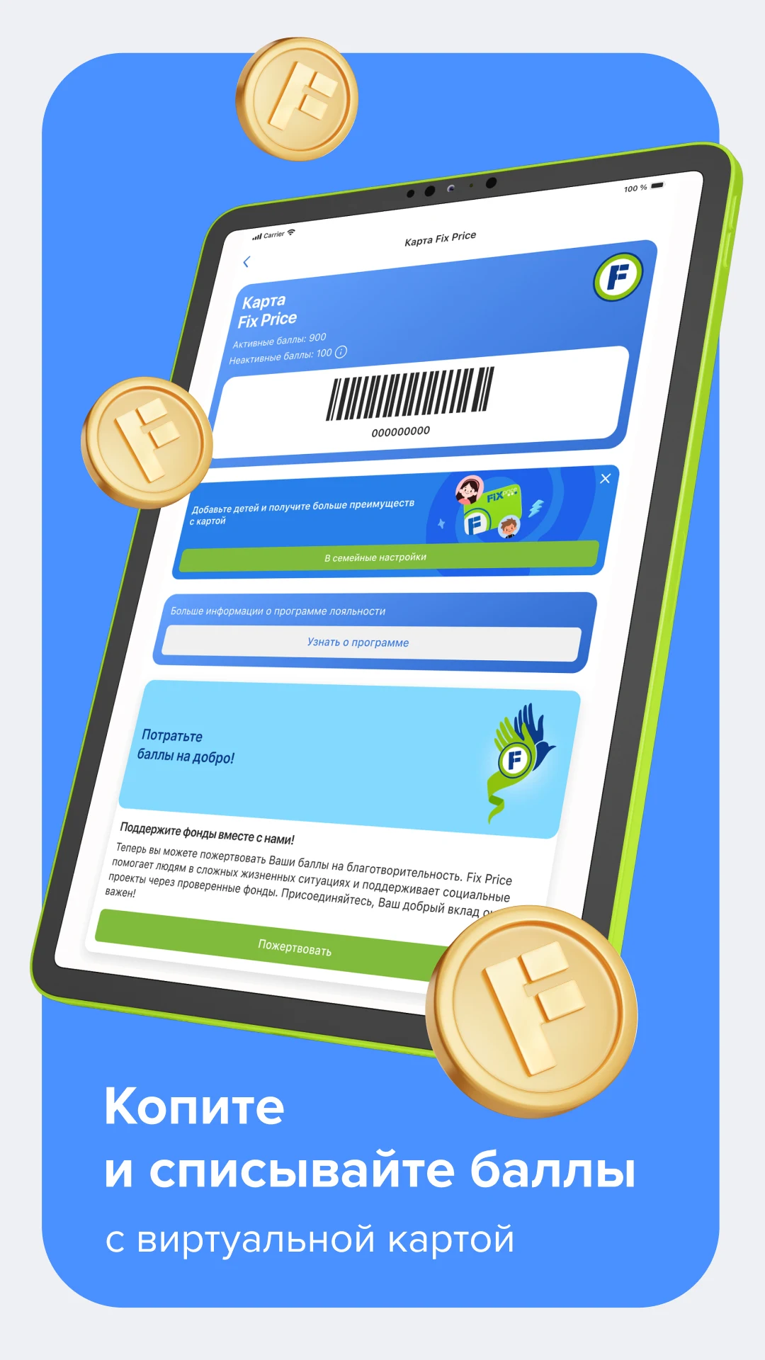Maximize your shopping experience with the FixPrice app—a comprehensive tool designed to enhance every purchase you make within the expansive Fix Price retail network. Streamline your shopping journey with a digitized Fix Price card, readily accessible on the app's main screen, which effectively replaces the need for a physical card. You can simply tap on the virtual card to display the barcode required for adding and using points at the checkout, ensuring a seamless transaction process.