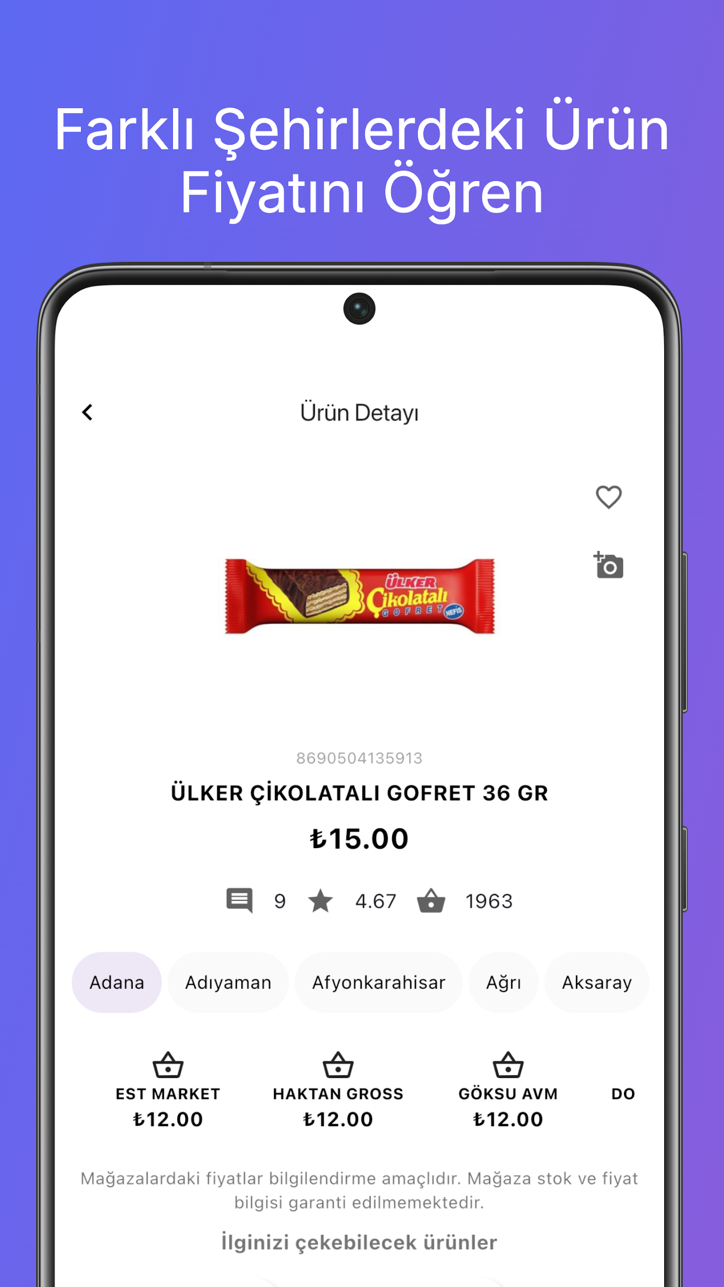 This barcode scanning app covers over 2.1 million products, allowing inquiries for items across various categories including groceries, stationery, glassware, pet supplies, herbal products, and more. Additionally, you can view the average selling price of the queried product across different provinces and nationally within Turkey.