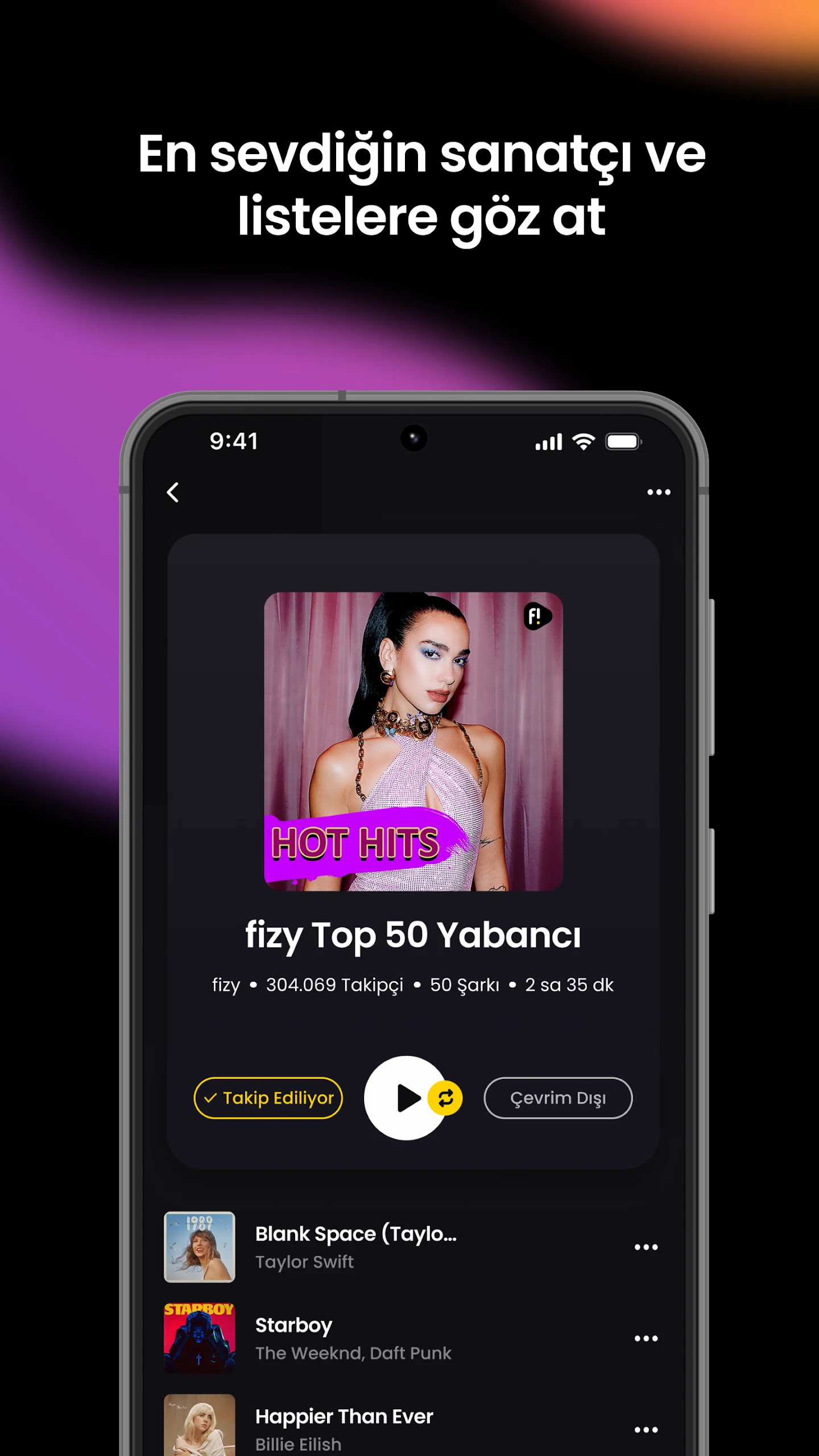 With fizy, say goodbye to boring commutes as you listen offline, shake up your playlists with daily recommendations, or identify that elusive song with "Ne Bu Çalan." Whether you're a Mert Demir fan or fancy some Hande Kazanova podcasts, fizy has got you covered. Join the fizy fam today!