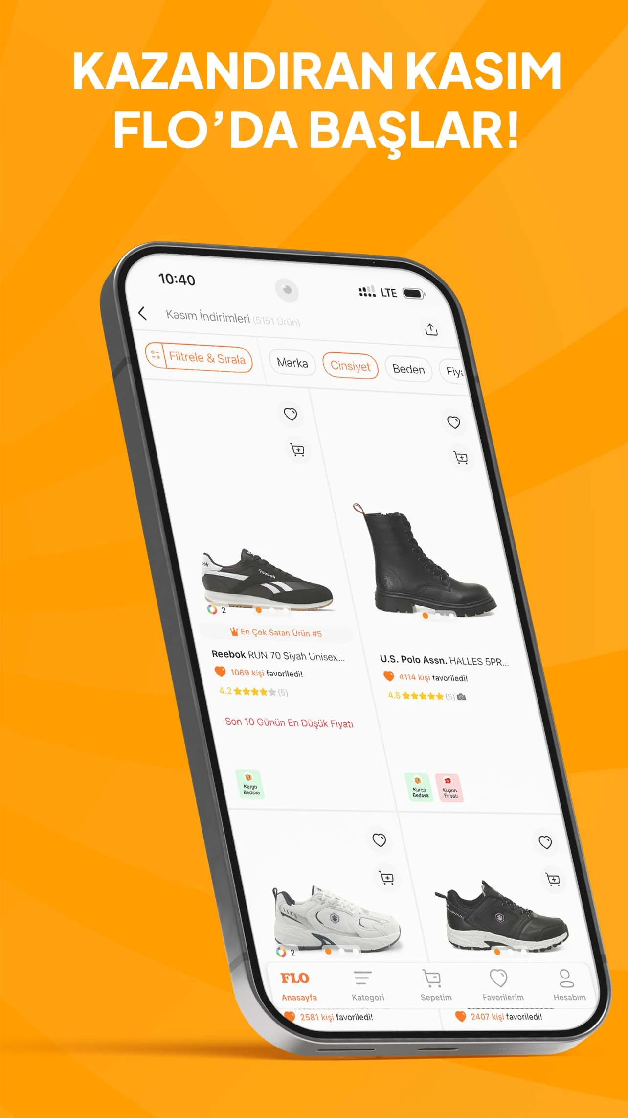 Experience fast and secure shopping with the FLO app! Adidas, Nike, Puma, Lumberjack, Skechers, New Balance, Hummel, Reebok, Crocs, Calvin Klein, Vicco, Dockers by Gerli, U.S. Polo ASSN, UGG, Ceyo, Kinetix, Polaris, Diesel, Igor, Inci, Nine West, Buff, Badbear, Lotto, Superga, and all other brands you are looking for are here! With discount opportunities and an easy interface, the FLO mobile app opens the doors to shopping for you!