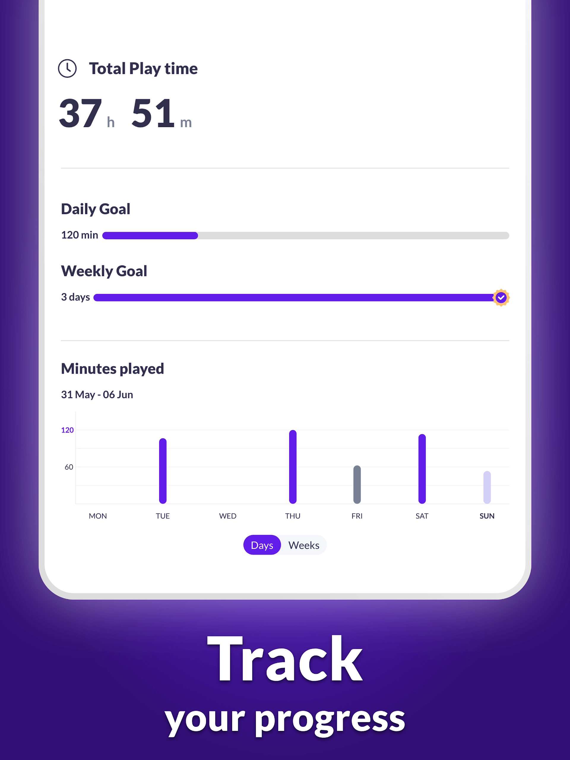 Tracks progress visually with scoring system