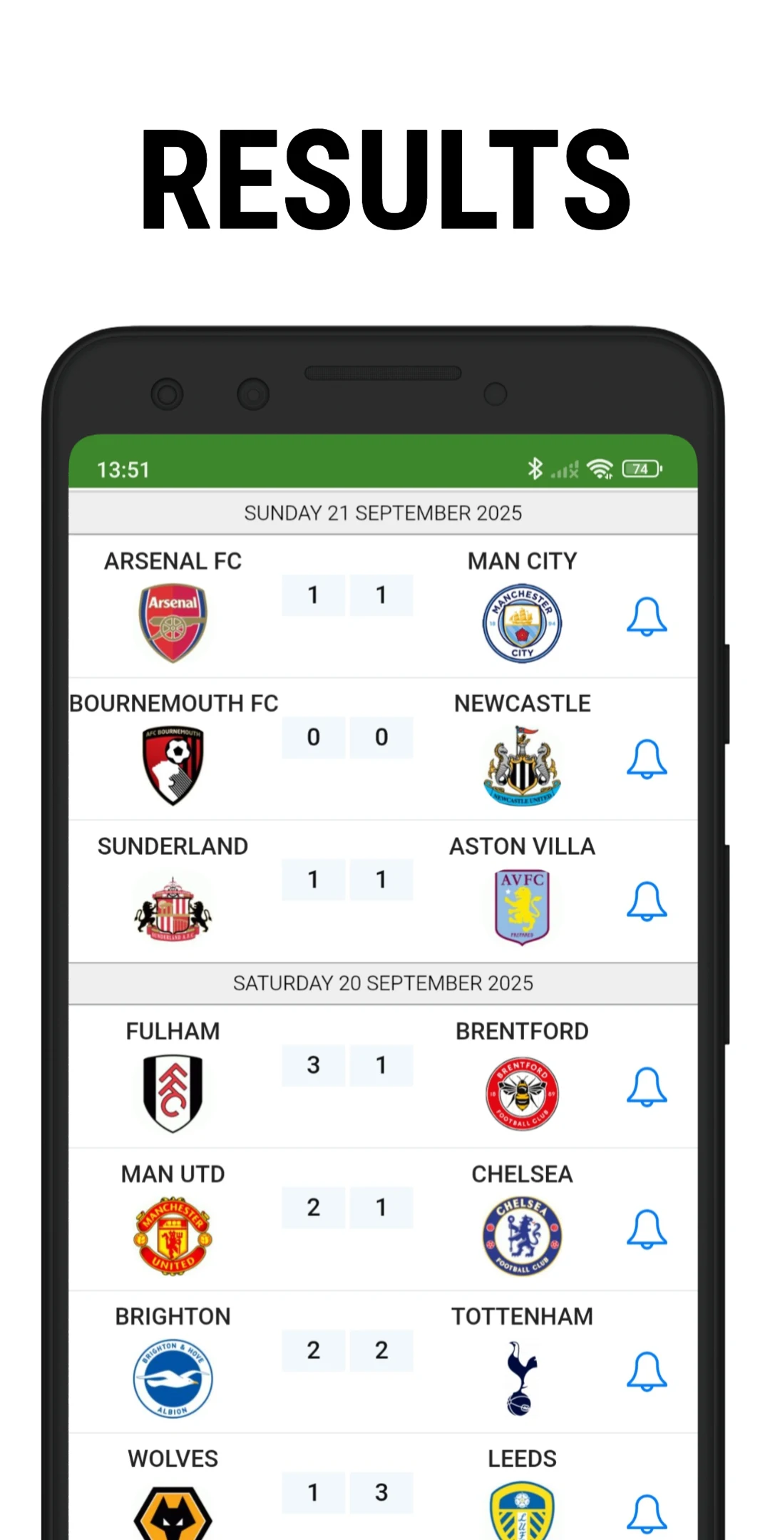 Get push notifications! Opt-in to receive alerts for match events such as goals scored by either team during a game!