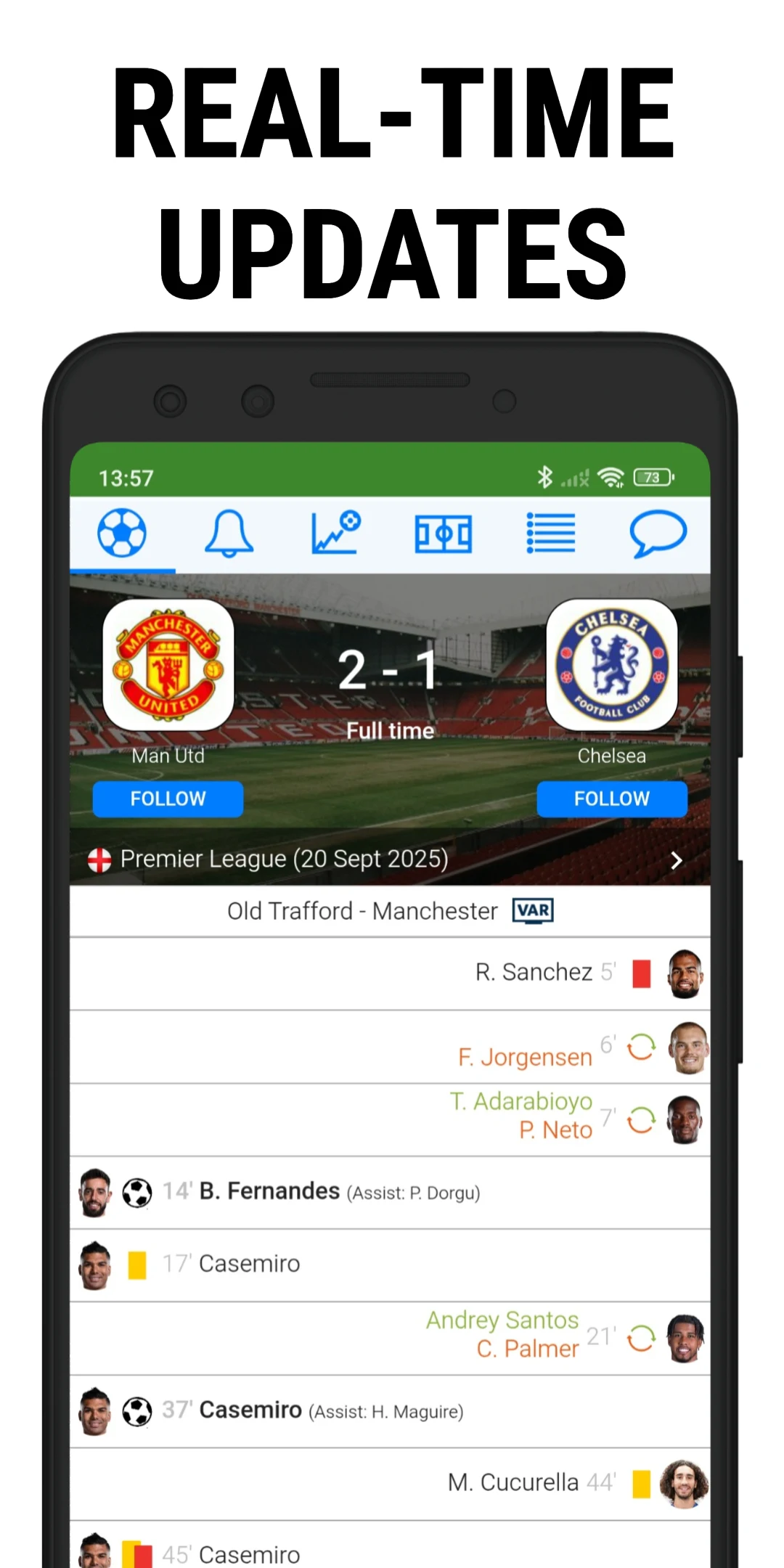 With a user-friendly design, Football Live Scores automatically prioritizes the leagues or countries you favor, offering a streamlined experience. It showcases match details like scorers, card information, and penalties, all in one place. Enjoy unlimited access to real-time football updates anytime, free of charge, with the Football Live Scores app on your Android device.