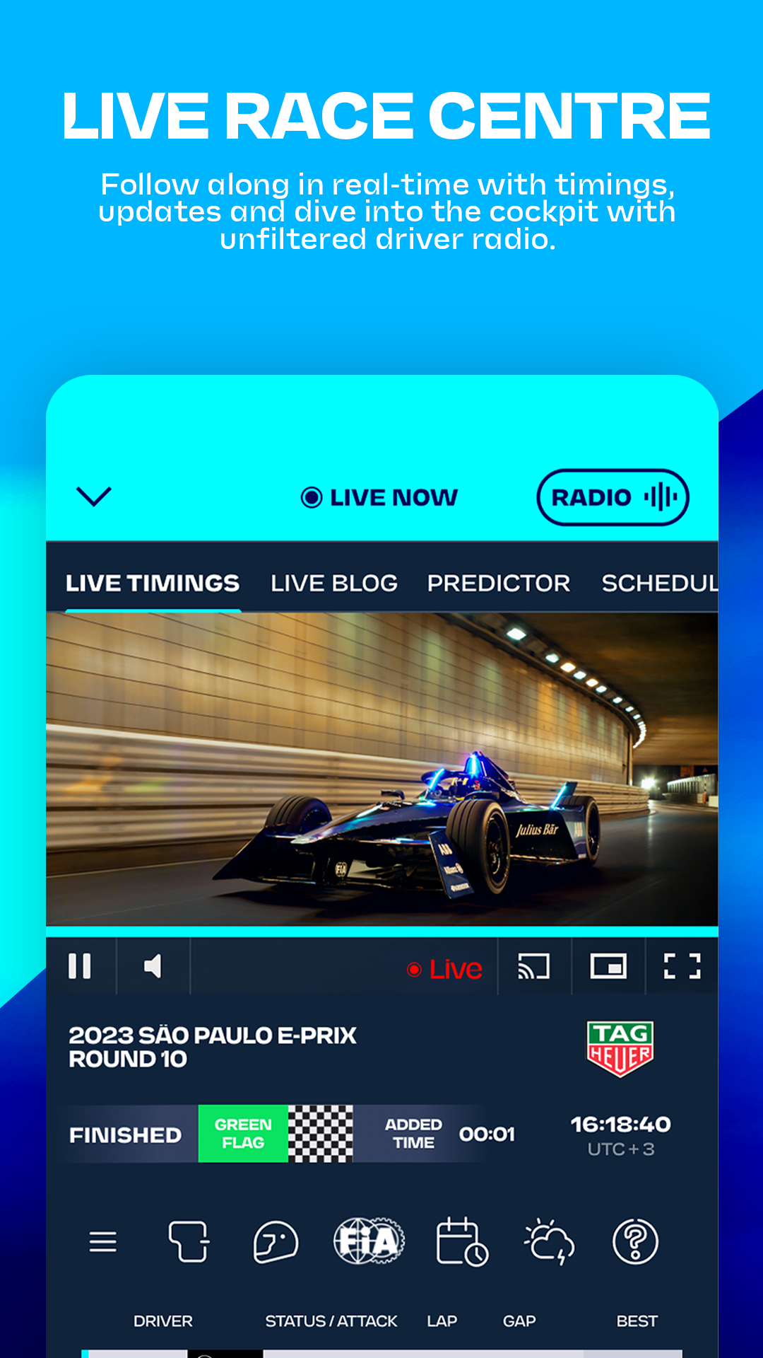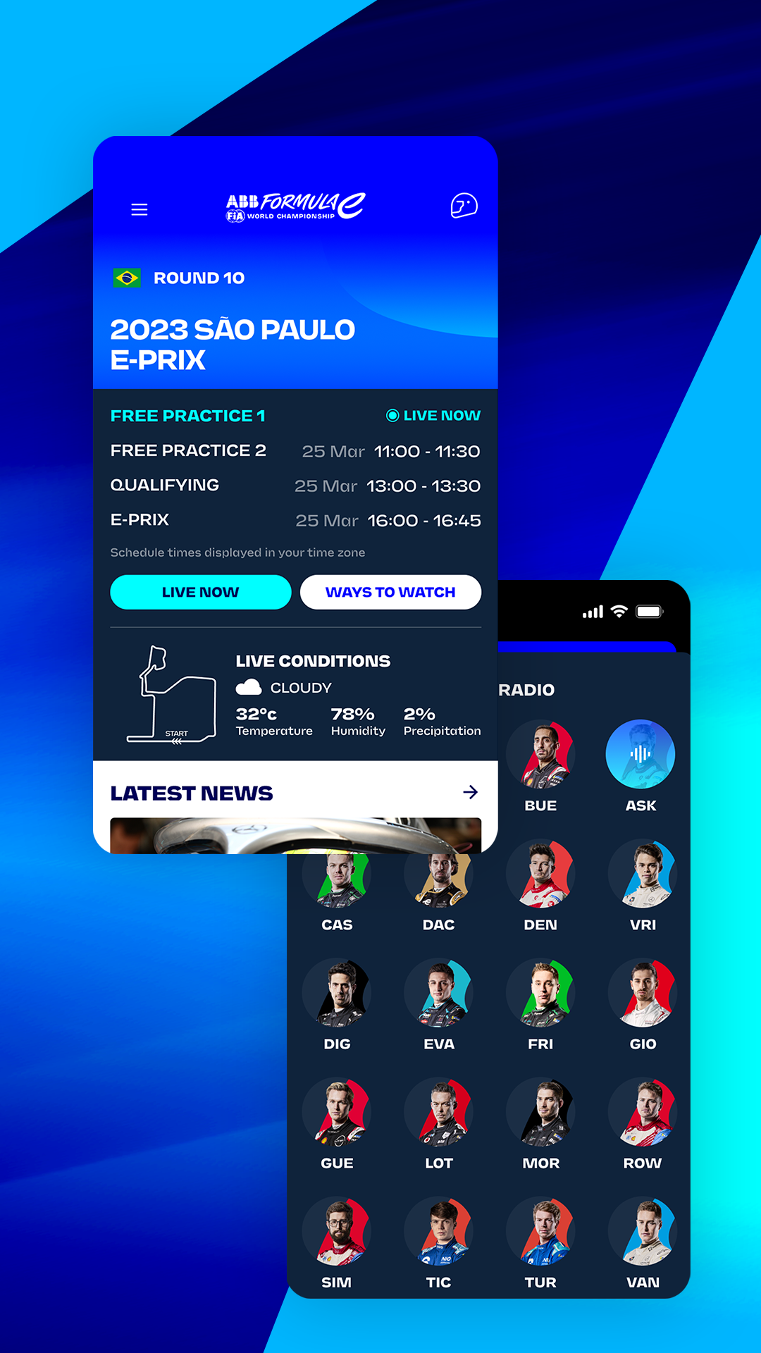 Experience the thrill of all-electric racing with real-time updates, exclusive videos, and immersive live commentary at your fingertips!